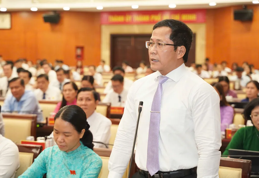 Đại biểu Trần Hoàng Danh bày tỏ quan tâm đến dự án giải quyết ngập do triều cường có xét đến biến đổi khí hậu - giai đoạn 1, còn gọi là dự án chống ngập 10.000 tỉ đồng. Ông đề nghị UBND TP.HCM thông tin về tiến độ dự án này để giải quyết căn cơ vấn đề ngập lụt của TP, nhất là trong bối cảnh biến đổi khí hậu, sụt lún.