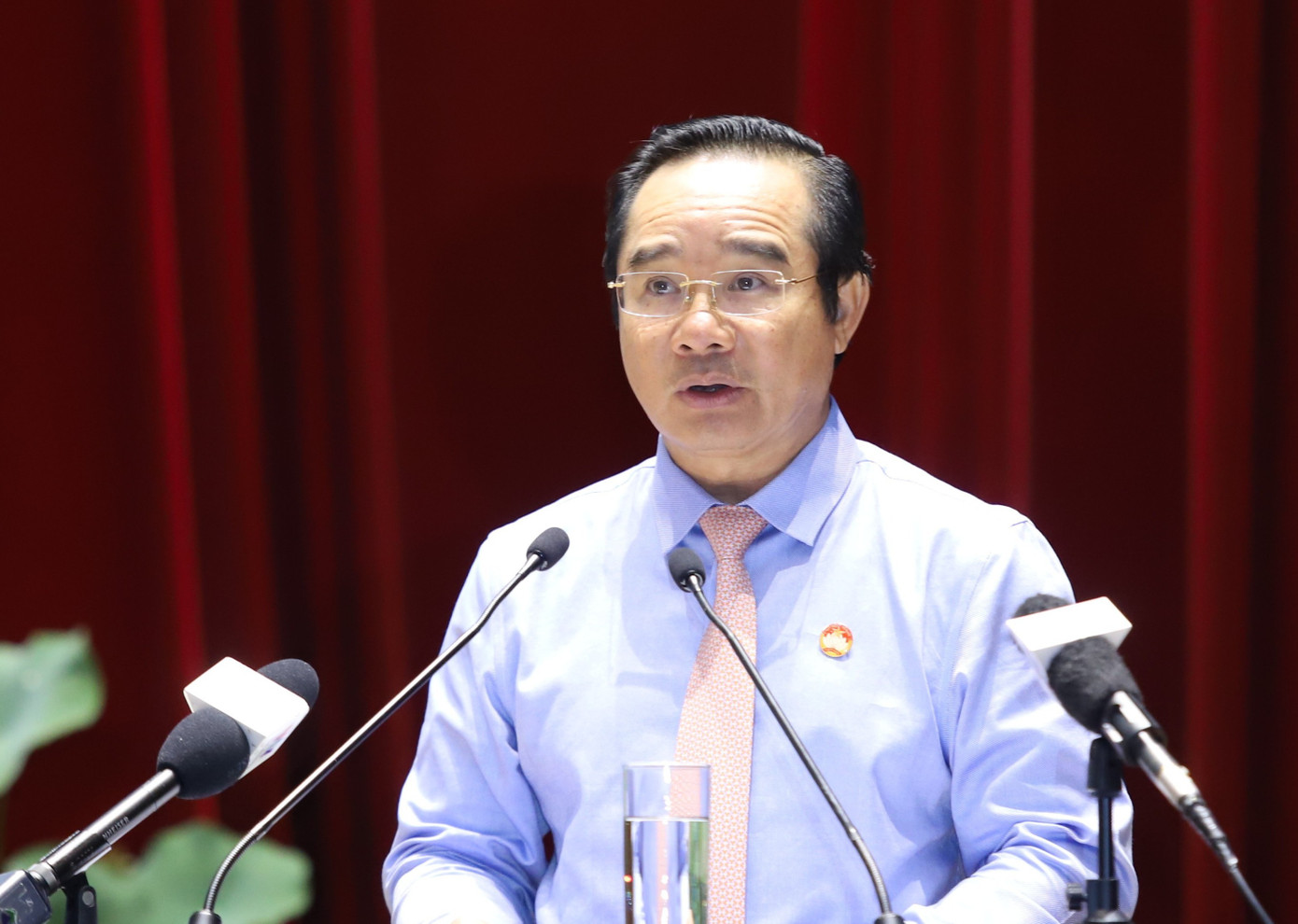 Chủ tịch UBND TPHCM Nguyễn Văn Được tham luận tại Đại hội. Ảnh: Ngô Tùng