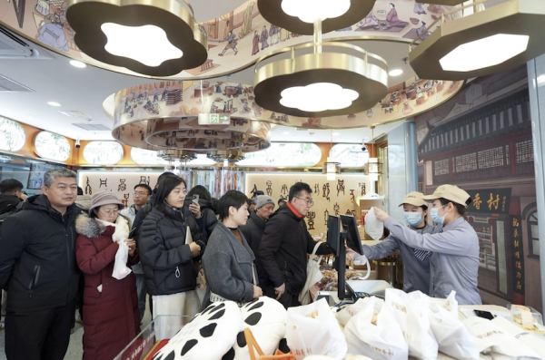 Một chi tiết được truyền thông Trung Quốc đặc biệt quan tâm là việc ông Tập Cận Bình đã mua một gói bánh đặc sản trị giá 45 nhân dân tệ (khoảng 6,5 USD). Theo chủ tiệm bánh, nhà lãnh đạo Trung Quốc đã chọn ba món gồm bánh quẩy phủ mật ong, bánh quẩy nhân kem và bánh hoa táo tàu - loại bánh quy nhiều lớp hình bông hoa với nhân làm từ táo đỏ. Ảnh: Xinhua
