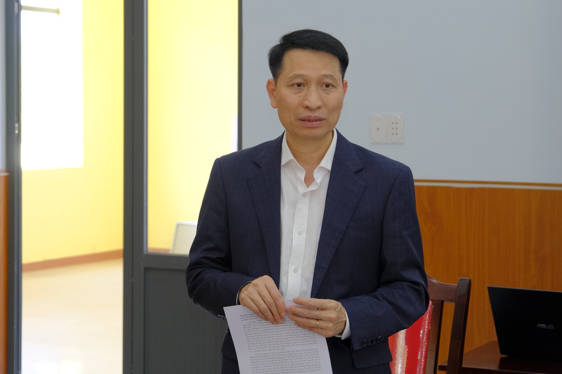 Chủ tịch UBND xã Quảng Tân Trần Vĩnh Phú nêu một số khó khăn, vướng mắc của địa phương trong công tác chuẩn bị bầu cử