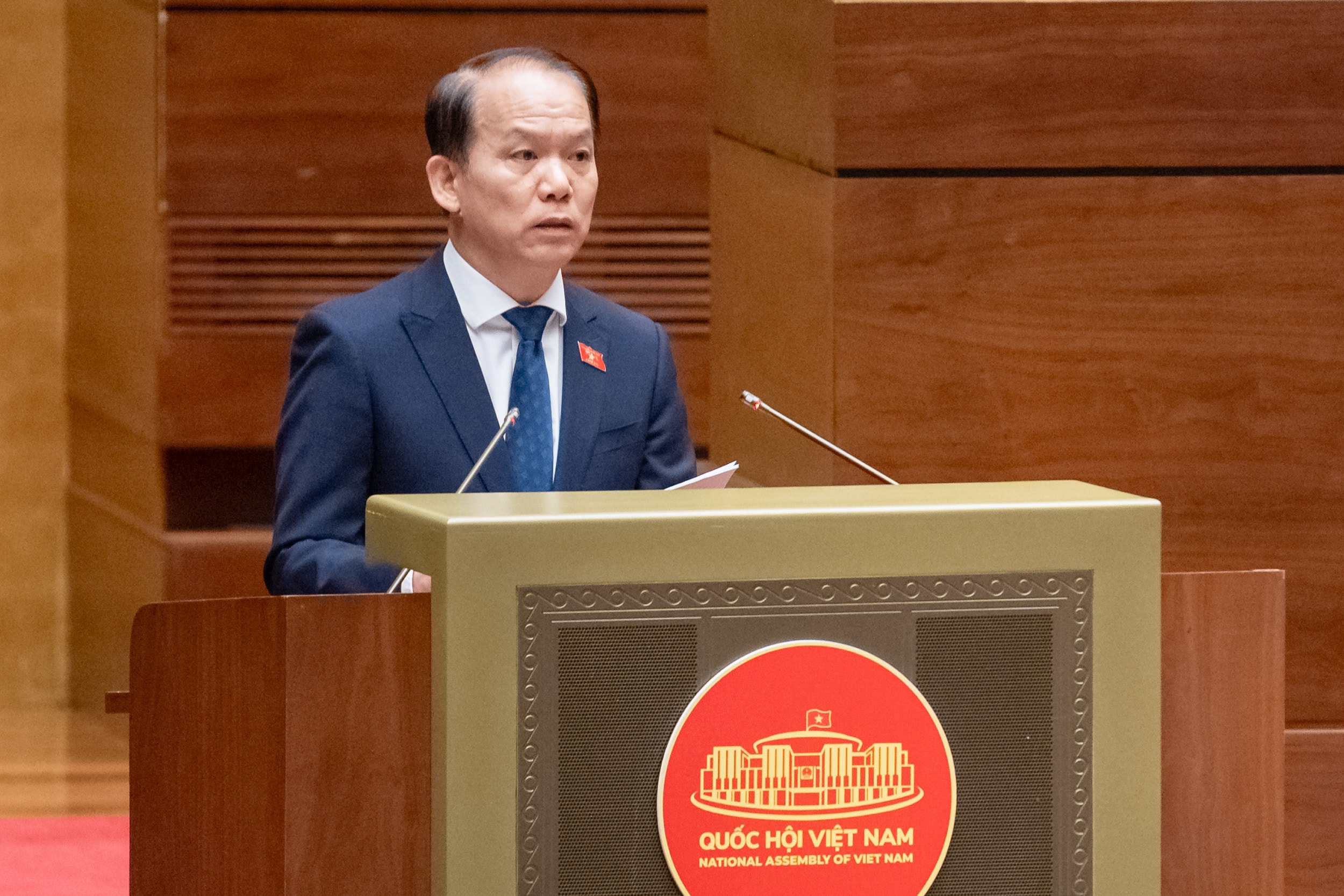 Bộ trưởng Bộ Tư pháp Hoàng Thanh Tùng trình bày tóm tắt Báo cáo tiếp thu, giải trình và chỉnh lý dự thảo Luật. Ảnh: Phạm Thắng