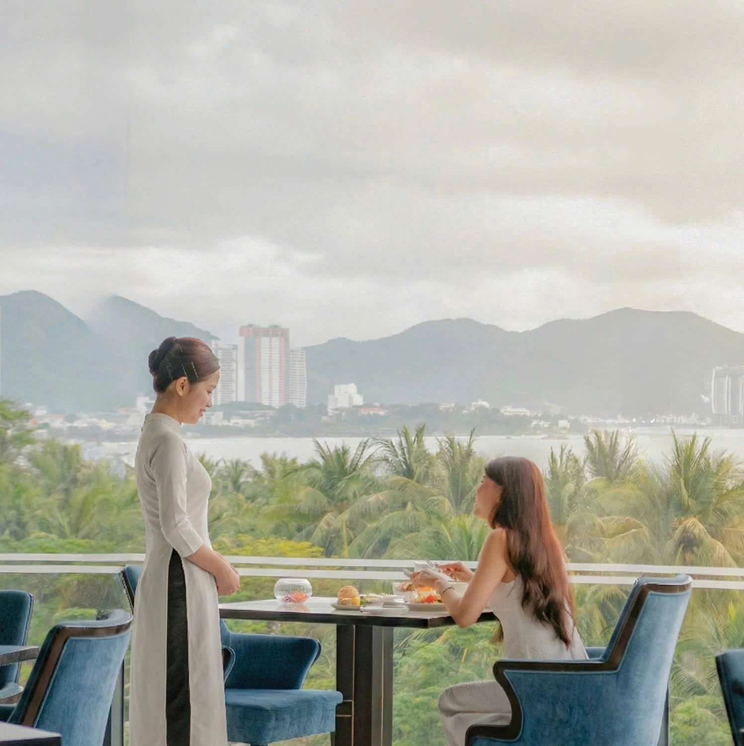 Nhân viên Khách sạn Vinpearl Beachfront Nha Trang phục vụ du khách.