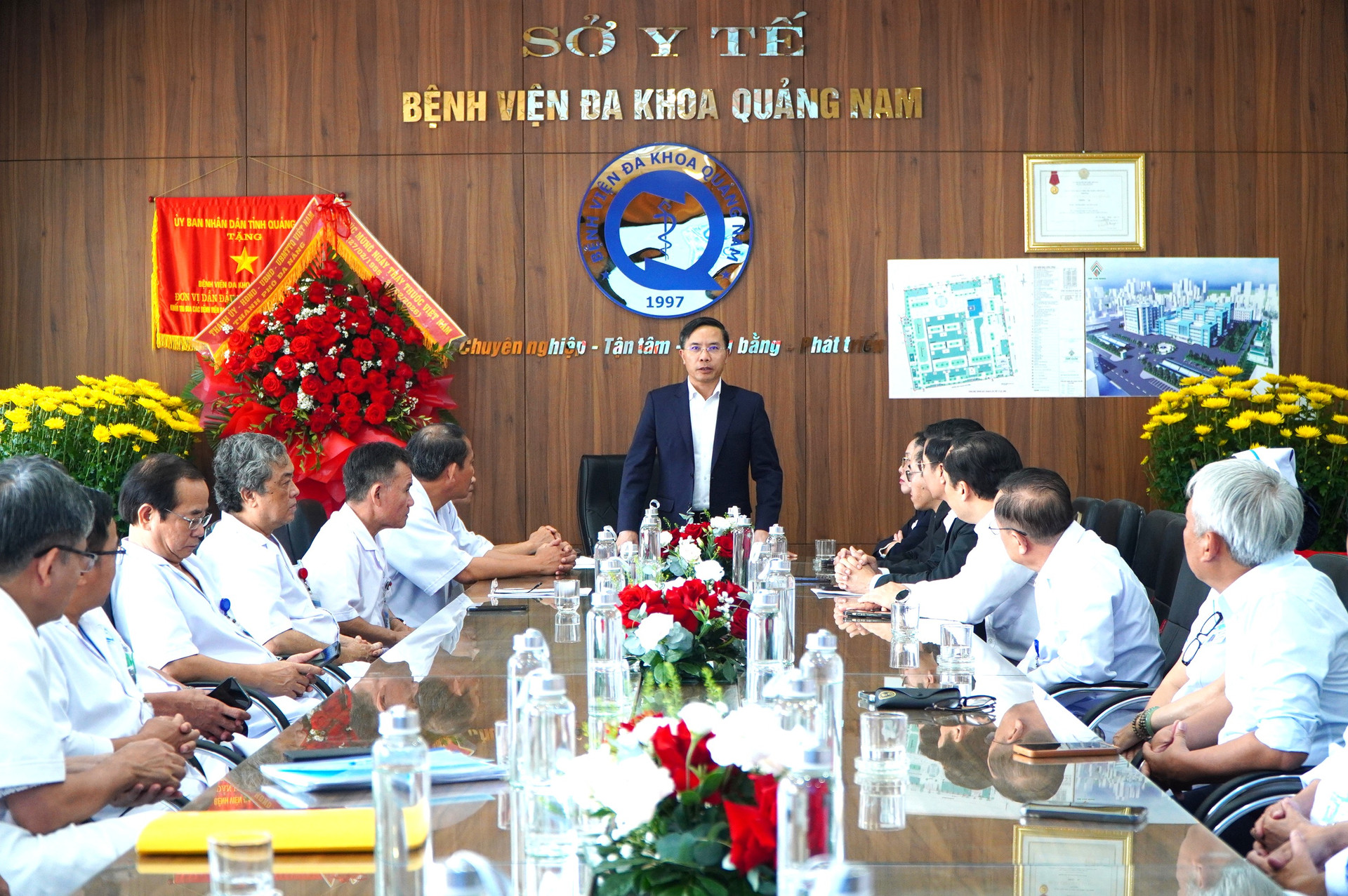 Lãnh đạo Bệnh viện Đa khoa Quảng Nam báo cáo tình hình hoạt động bệnh viện với lãnh đạo thành phố. Ảnh: VINH ANH