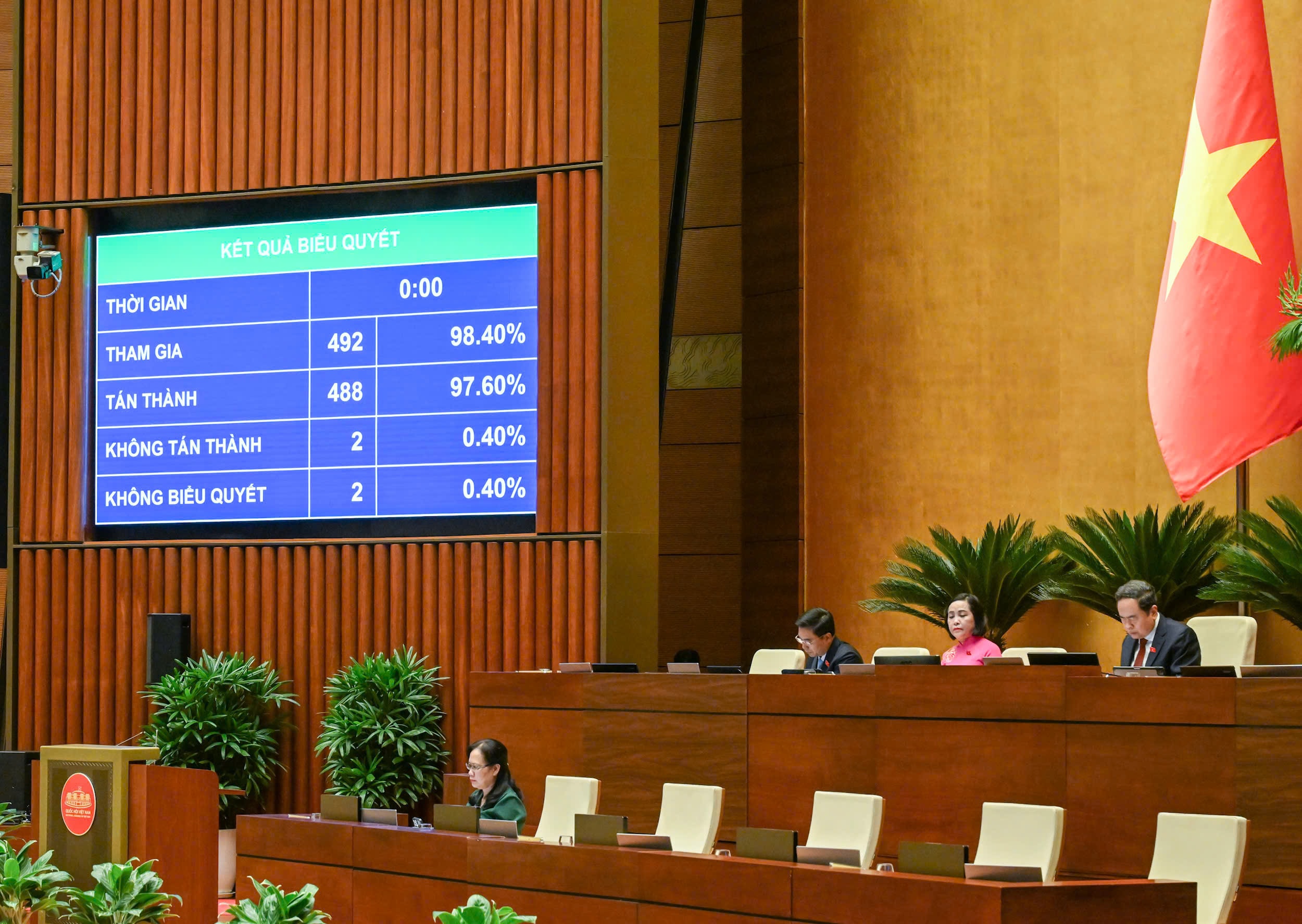 97,6% đại biểu Quốc hội biểu quyết tán thành thông qua Luật Thủ đô (sửa đổi). Ảnh: quochoi