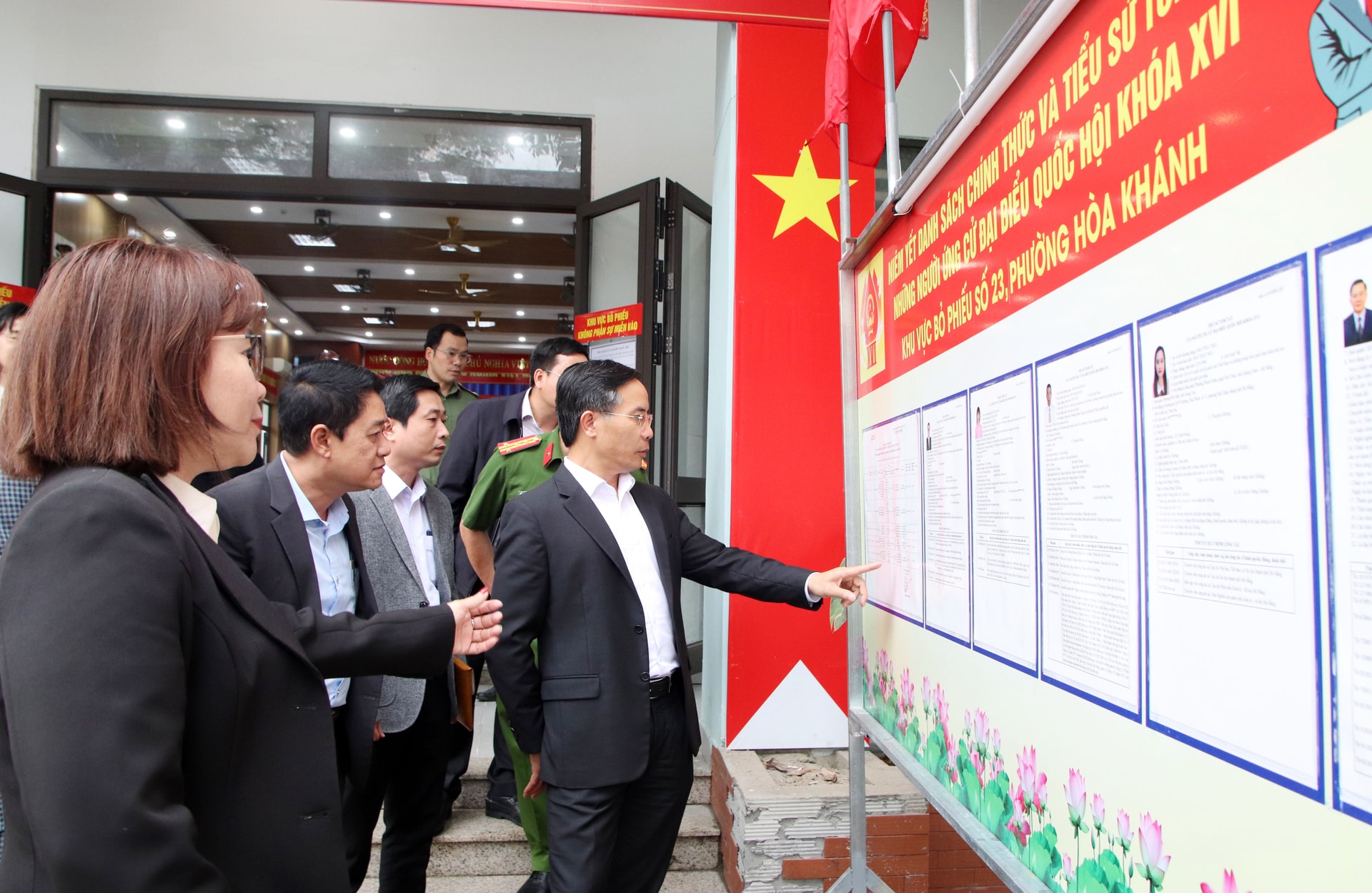 Chủ tịch UBND thành phố Phạm Đức Ấn kiểm tra bảng treo danh sách các ứng cử viên. Ảnh: TRỌNG HUY