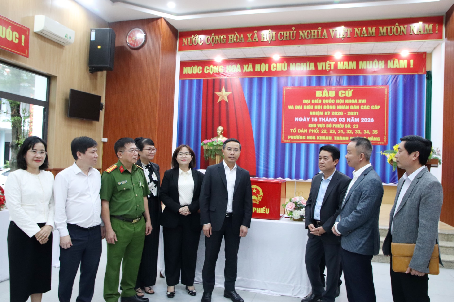 Đến nay công tác bố trí, trang trí khu vực bỏ phiếu đã hoàn thành tại 44/44 khu vực bỏ phiếu trên địa bàn phường, bảo đảm đúng quy định, tạo không khí trang nghiêm, dân chủ, góp phần phục vụ tốt cho ngày bầu cử đại biểu Quốc hội khóa XVI và đại biểu HĐND các cấp nhiệm kỳ 2026 - 2031.