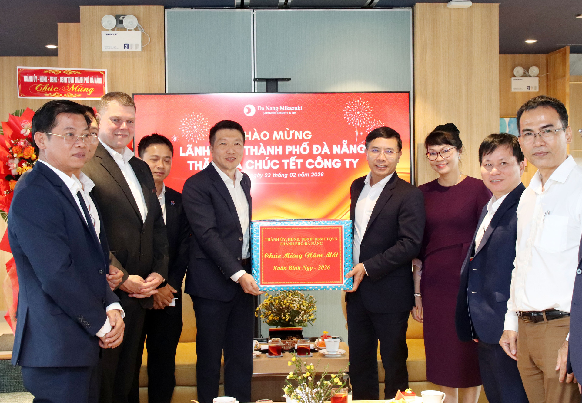* Tại Công ty TNHH ODK Mikazuki Việt Nam, Chủ tịch UBND thành phố Phạm Đức Ấn thăm hỏi tình hình hoạt động, định hướng phát triển của đơn vị; ghi nhận, biểu dương kết quả của đơn vị trong năm 2025, đóng góp cao trong việc thúc đẩy dịch vụ, du lịch tại thành phố, cũng như làm cầu nối bền chặt cho quan hệ Việt Nam và Nhật Bản nói chung, thành phố Đà Nẵng và Nhật Bản nói riêng.