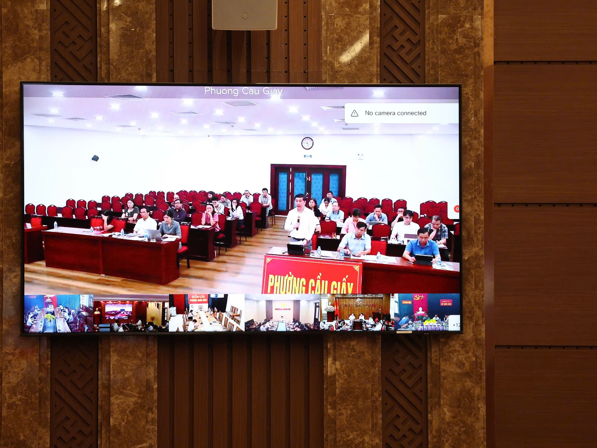Hội nghị được tổ chức trực tuyến từ điểm cầu Thành ủy Hà Nội kết nối tới các điểm cầu xã, phường toàn thành phố.