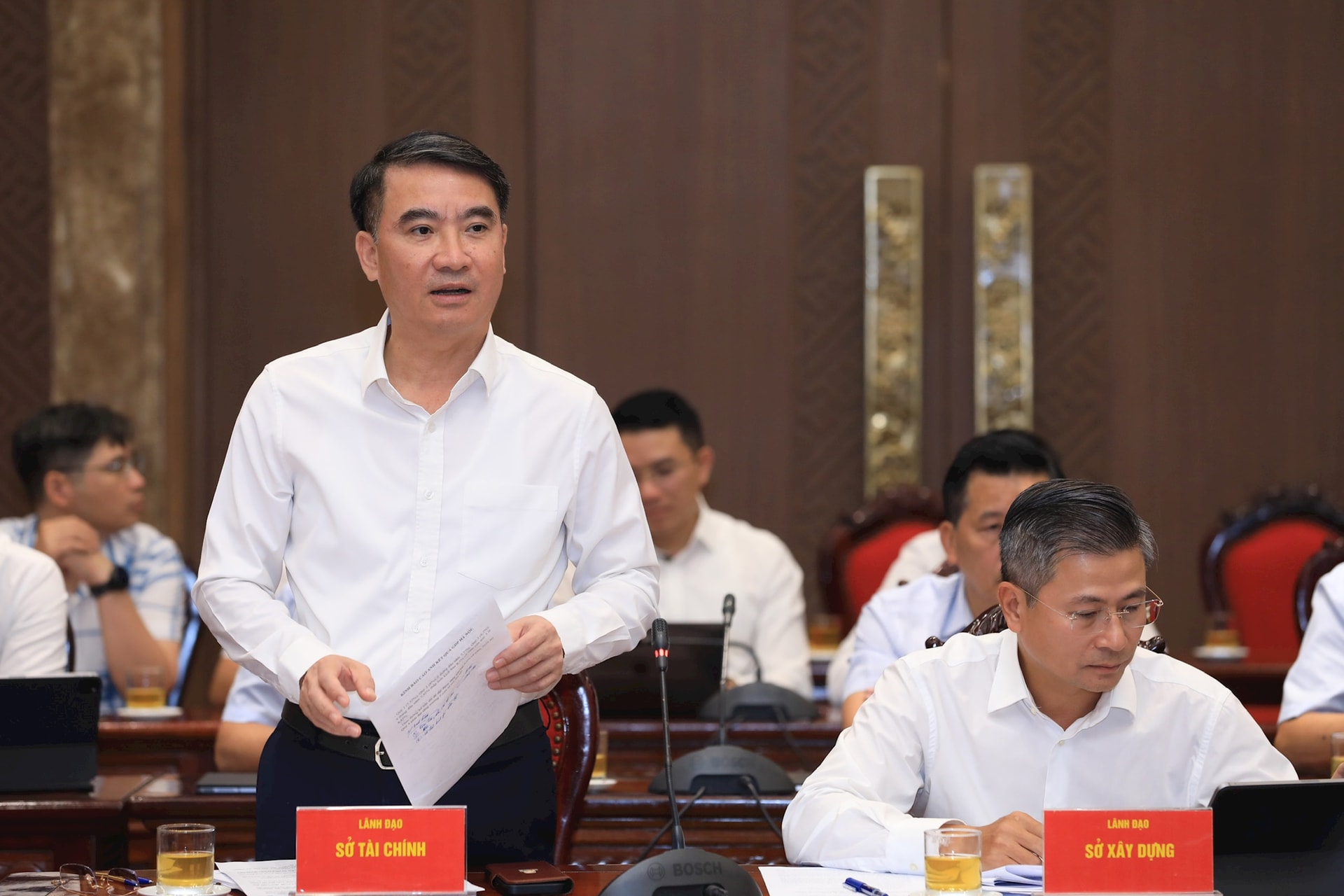 Chủ trì hội nghị có các đồng chí: Trần Sỹ Thanh, Ủy viên Trung ương Đảng, Phó Bí thư Thành ủy, Chủ tịch UBND thành phố Hà Nội; Ủy viên Ban Thường vụ Thành ủy, Phó Chủ tịch Thường trực HĐND thành phố Hà Nội Phùng Thị Hồng Hà; Ủy viên Ban Thường vụ Thành ủy, Phó Chủ tịch UBND thành phố Hà Nội Dương Đức Tuấn.