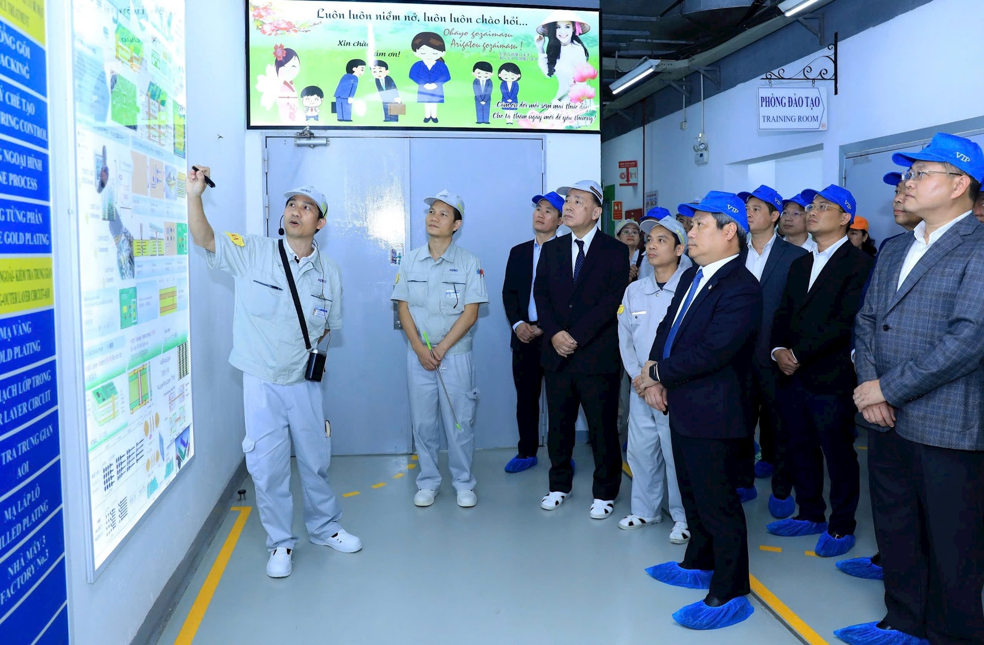 Chủ tịch UBND thành phố Vũ Đại Thắng bày tỏ vui mừng khi đến thăm doanh nghiệp đầu tư nước ngoài đã có gần 20 năm hoạt động tại Hà Nội và có nhiều đóng góp quan trọng cho công nghiệp điện tử, đặc biệt trong lĩnh vực sản xuất và xuất khẩu.