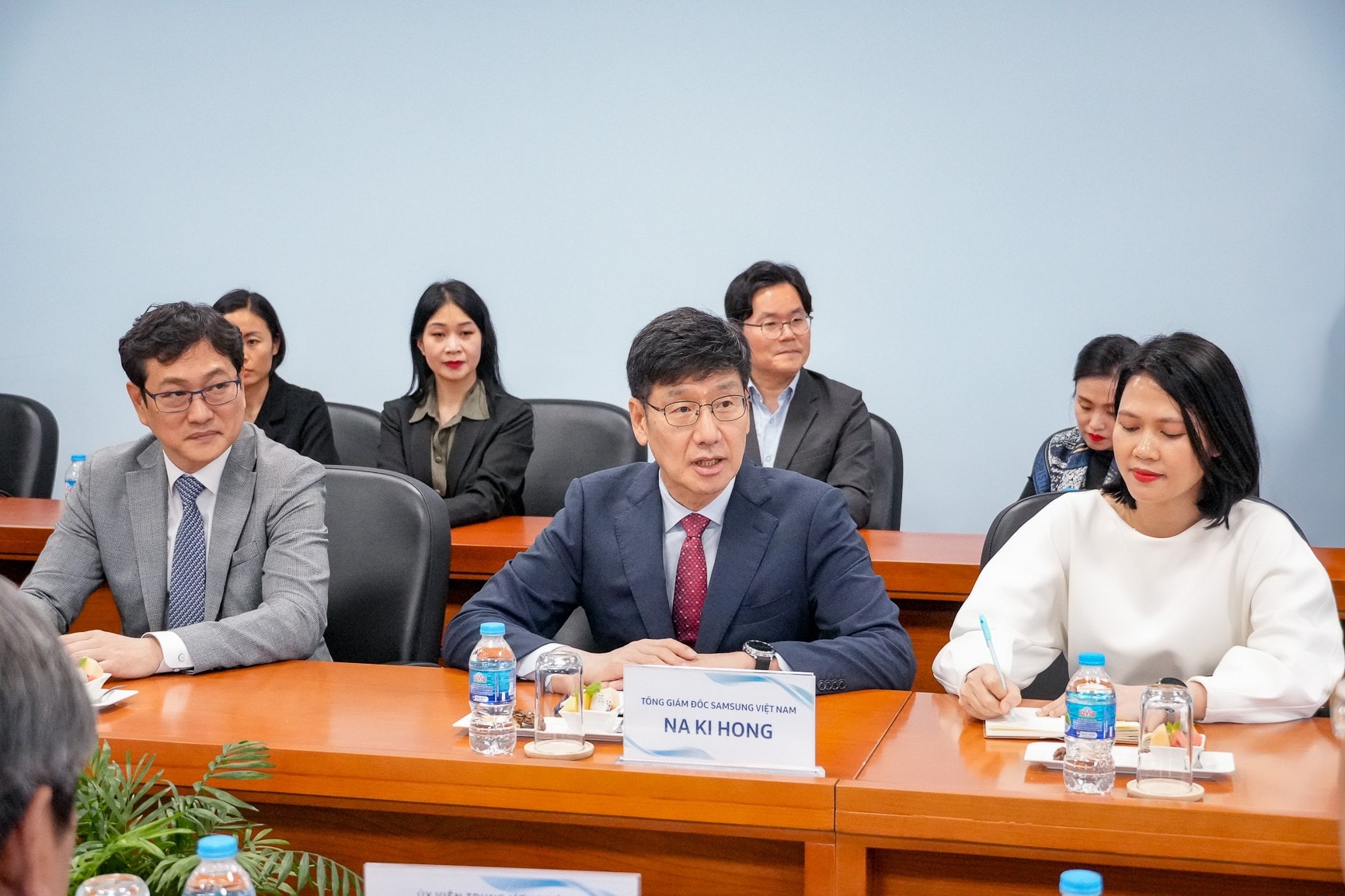 Ông Na Ki Hong cho biết, Trung tâm R&D Samsung được khánh thành tháng 12-2022, với quy mô 3 tầng hầm và 16 tầng nổi; hiện tại, quy mô nhân lực khoảng 2.600 người, trong đó chỉ 10 nhân viên là người Hàn Quốc. Điều này cho thấy vai trò chủ đạo mà đội ngũ nhân lực Việt Nam đang đảm nhận.