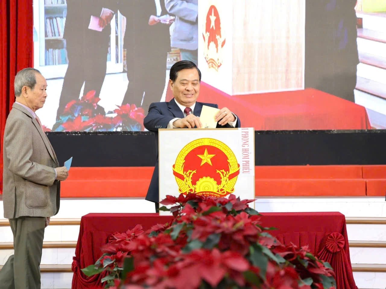 Sau khi thực hiện các nghi thức khai mạc bầu cử, đồng chí Phạm Hoàng Sơn, Phó Bí thư Tỉnh ủy, Chủ tịch UBND tỉnh đã cùng cử tri lần lượt tiến hành bỏ phiếu lựa chọn ra những người tiêu biểu, xứng đáng đại diện cho ý chí, nguyện vọng của mình trong Quốc hội và HĐND các cấp nhiệm kỳ mới.