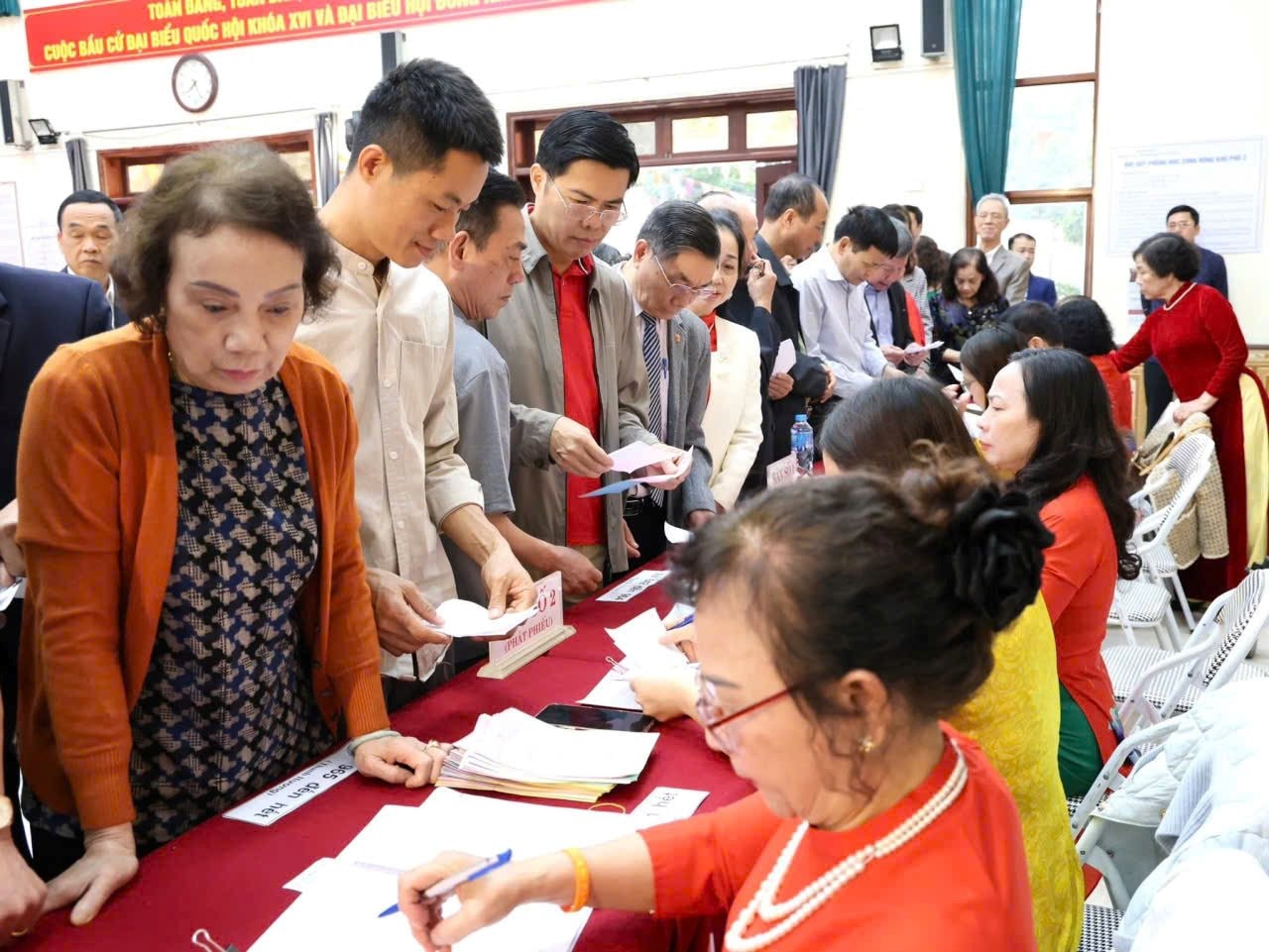 Cử tri Tổ dân phố Tiền An 2 nô nức đi bầu cử.