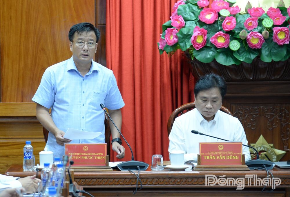 Phó Chủ tịch UBND tỉnh Đồng Tháp Nguyễn Phước Thiện phát biểu tại phiên họp.