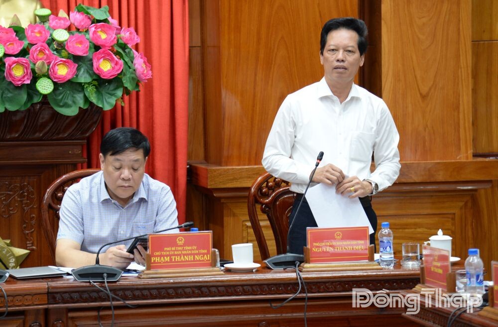 Phó Chủ tịch UBND tỉnh Đồng Tháp Nguyễn Thành Diệu phát biểu tại phiên họp.