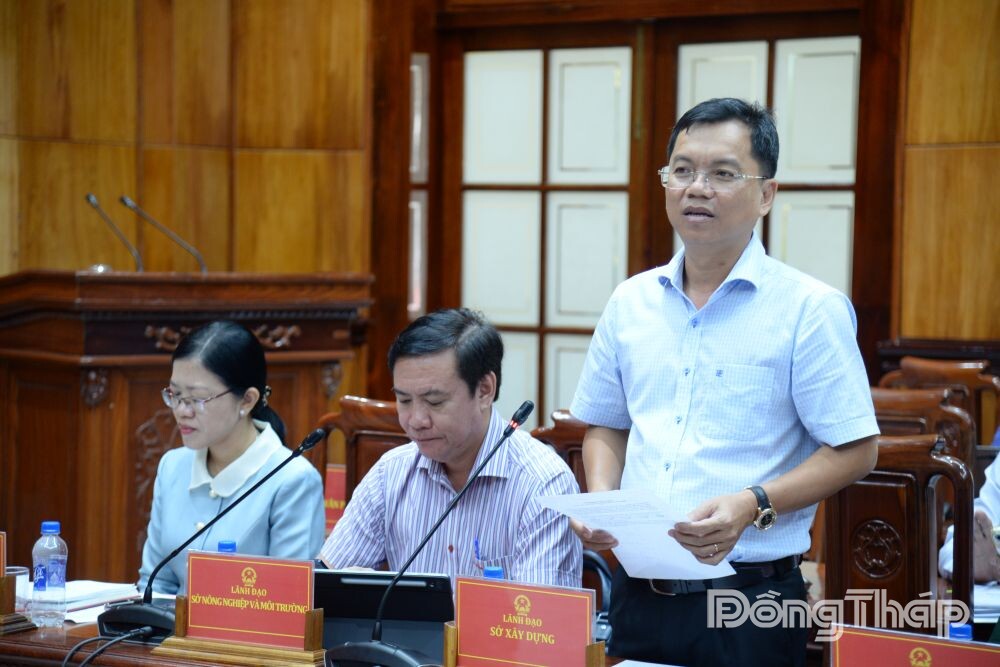 Giám đốc Sở Xây dựng tỉnh Đồng Tháp Nguyễn Thế Hồng Trung phát biểu tại phiên họp.