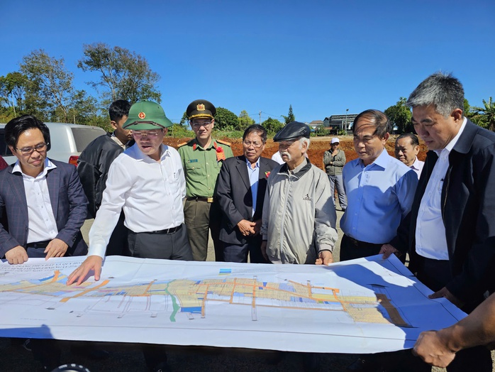 Chủ tịch UBND tỉnh Gia Lai Nguyễn Anh Tuấn thông tin về dự án với các nguyên lãnh đạo tỉnh Gia Lai và người dân