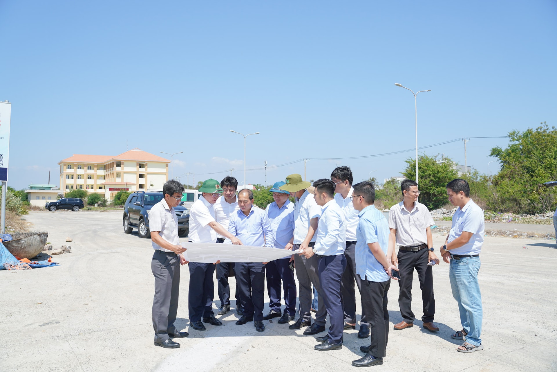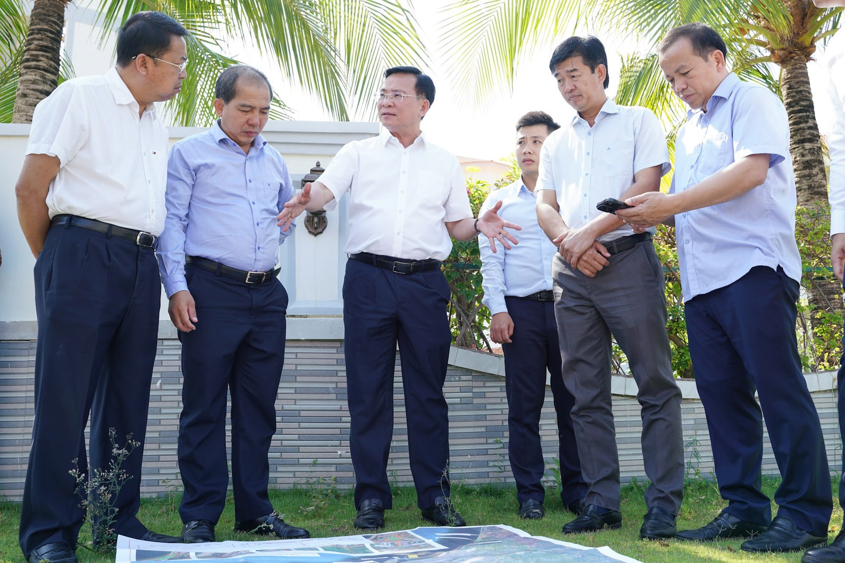 Ủy viên Ban Chấp hành Trung ương Đảng, Phó Bí thư Tỉnh ủy, Chủ tịch UBND tỉnh Hồ Văn Mười nắm bắt tiến độ và khảo sát vị trí thuộc dự án Đường ven biển