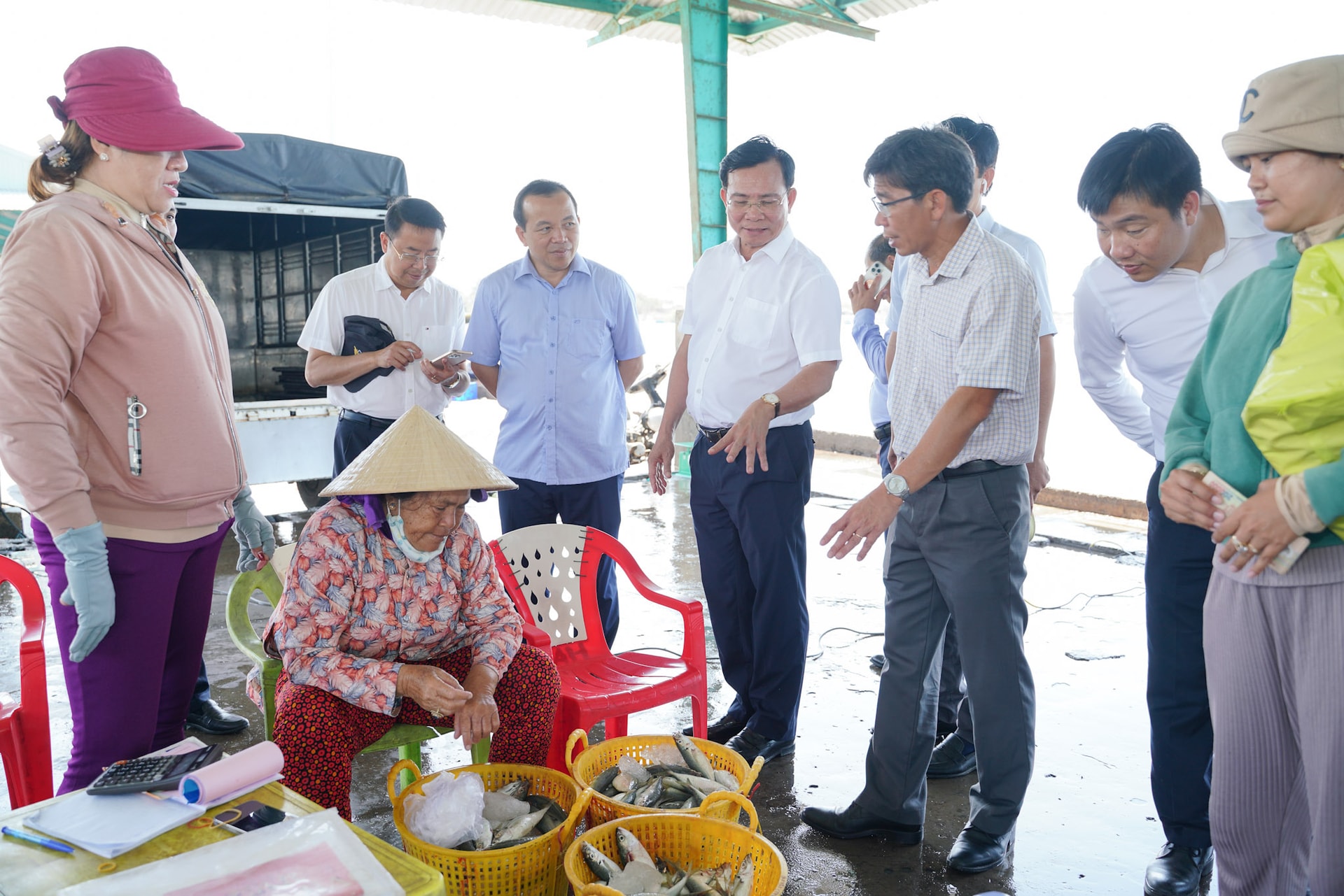 Ủy viên Ban Chấp hành Trung ương Đảng, Phó Bí thư Tỉnh ủy, Chủ tịch UBND tỉnh Hồ Văn Mười nắm bắt tình hình tại Cảng Phú Hài
