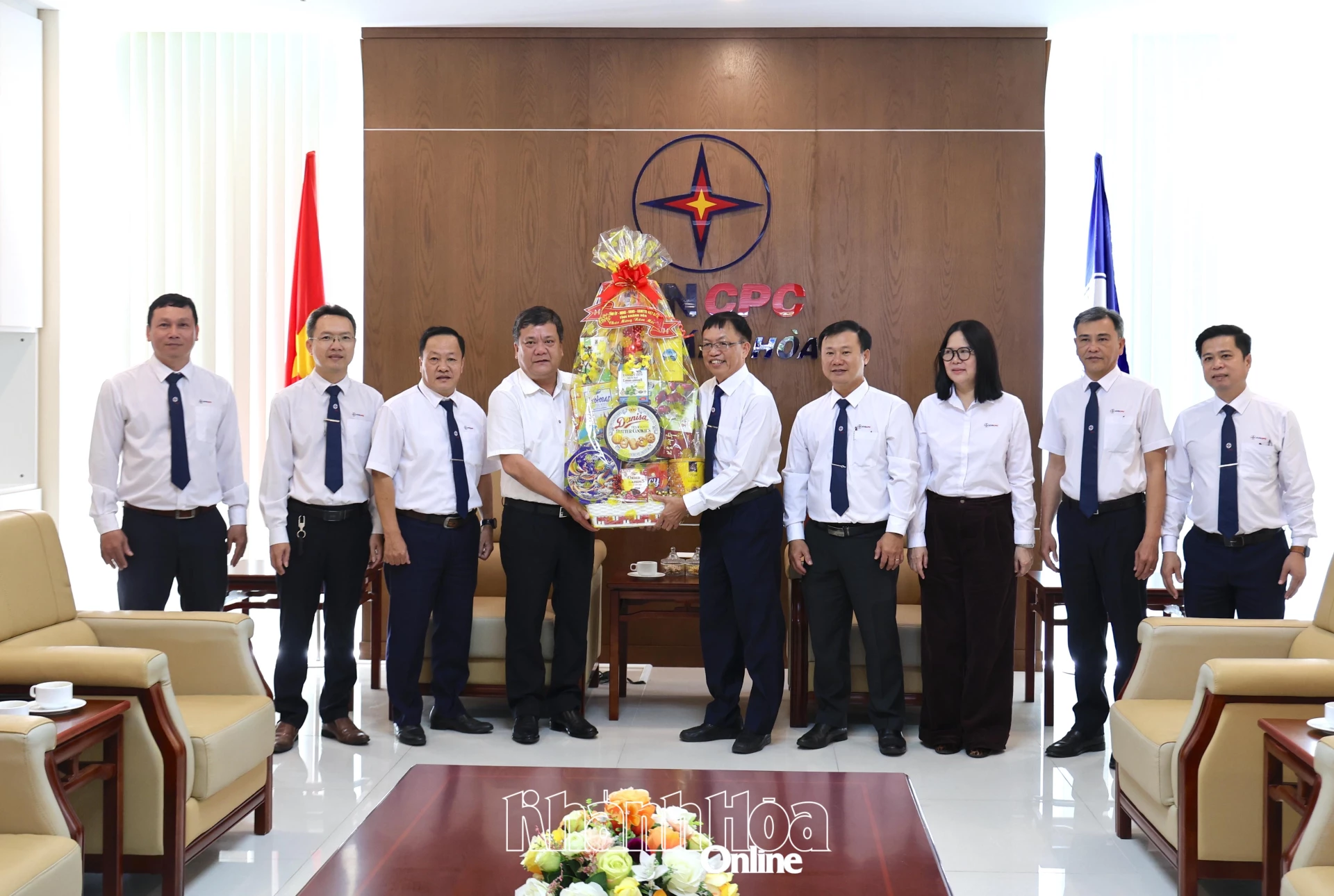 Chủ tịch UBND tỉnh Trần Phong tặng quà, chúc Tết Công ty Cổ phần Điện lực Khánh Hòa.