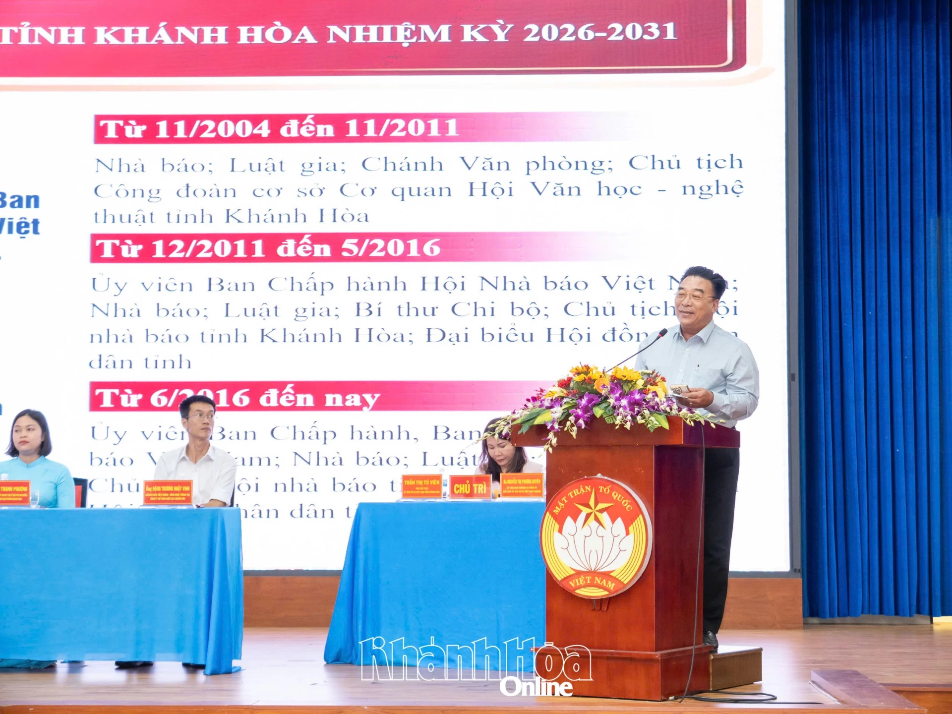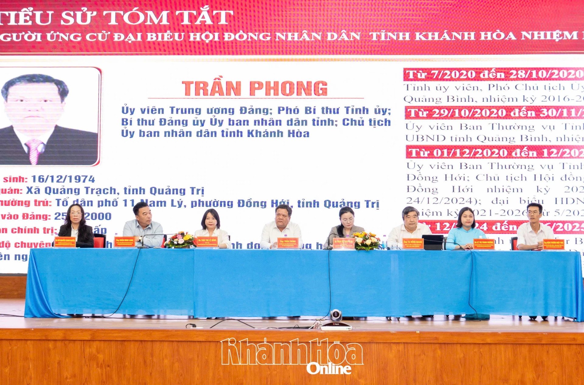 Tại hội nghị, đại diện Ban Thường trực Ủy ban MTTQ Việt Nam tỉnh thông qua tiểu sử tóm tắt của các ứng cử viên đại biểu HĐND tỉnh nhiệm kỳ 2026 - 2031, Đơn vị bầu cử số 7, gồm các ông, bà: Trần Phong - Ủy viên Trung ương Đảng, Phó Bí thư Tỉnh ủy, Chủ tịch UBND tỉnh; Phạm Thị Xuân Trang - Tỉnh ủy viên, Phó Chủ tịch HĐND tỉnh; Thái Thị Lệ Hằng - Tỉnh ủy viên, Giám đốc Báo và Phát thanh, Truyền hình Khánh Hòa; Tạ Hồng Quang - Tỉnh ủy viên, Bí thư Đảng ủy, Chủ tịch HĐND phường Nha Trang; Đoàn Minh Long - Ủy viên Ban Chấp hành, Ủy viên Ban Kiểm tra Hội Nhà báo Việt Nam, Chủ tịch Hội Nhà báo tỉnh; Bùi Nguyễn Thanh Huyền - Phó Trưởng phòng phụ trách Phòng Khách hàng cá nhân, Ngân hàng Nông nghiệp và Phát triển Nông thôn Việt Nam Chi nhánh Khánh Hòa; Lê Thị Thanh Phương - Phó Chủ tịch Thường trực Ủy ban MTTQ Việt Nam phường, Chủ tịch Hội Liên hiệp Phụ nữ phường Nam Nha Trang; Đặng Trương Nhật Vinh - chuyên viên Viễn thông - Công nghệ thông tin, Công ty Cổ phần Điện lực Khánh Hòa.