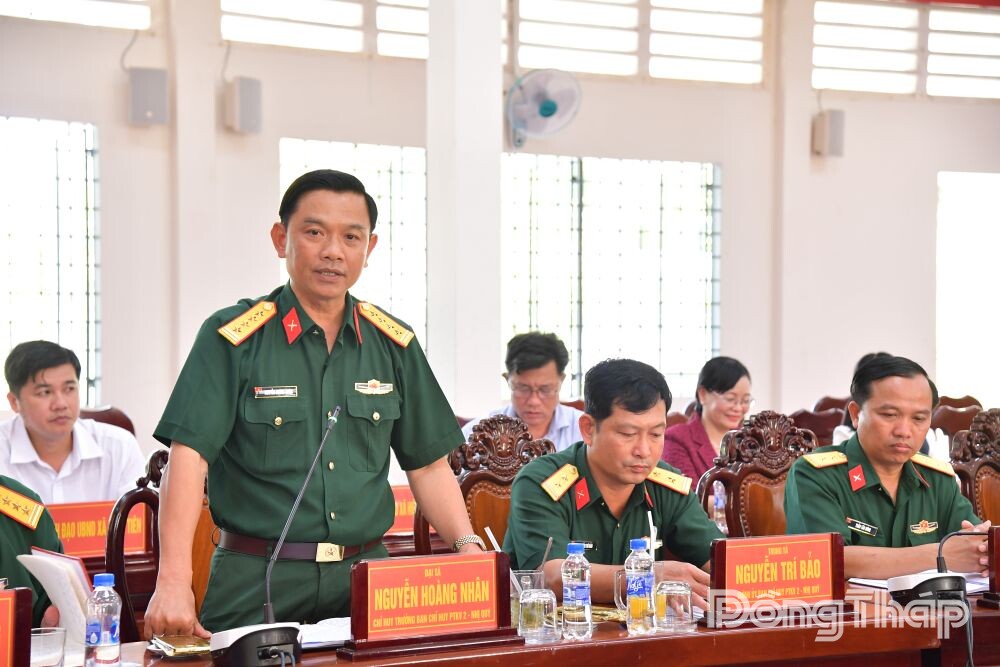 Đại tá Nguyễn Hoàng Nhân, Chỉ huy trưởng Ban Chỉ huy Phòng thủ khu vực 2 lĩnh hội ý kiến chỉ đạo của Chủ tịch UBND tỉnh.
