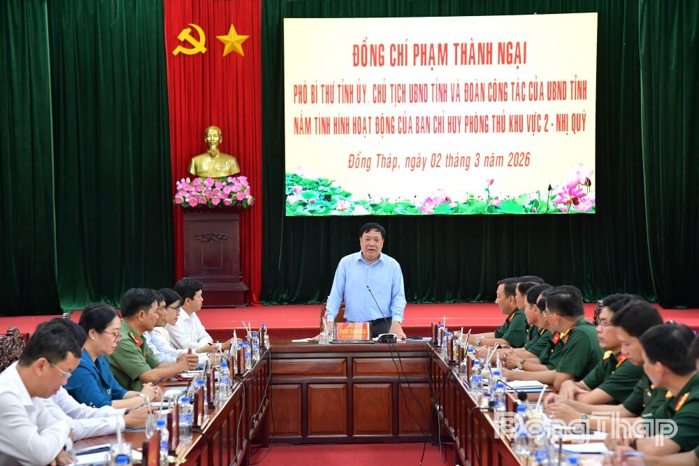 Phát biểu tại buổi làm việc, đồng chí Phạm Thành Ngại đề nghị Ban Chỉ huy PTKV 2 - Nhị Quý phối hợp các cơ quan, đơn vị tổ chức tốt Lễ giao nhận quân, đặc biệt là điểm cầu truyền hình trực tiếp tại địa điểm Quảng trường Hùng Vương (phường Đạo Thạnh), làm tốt công tác chính sách hậu phương Quân đội; duy trì nghiêm chế độ trực SSCĐ, nắm chắc tình hình địa bàn không để bị động bất ngờ, bảo đảm an toàn tuyệt đối cho các sự kiện chính trị quan trọng của đất nước và địa phương, trọng tâm là cuộc bầu cử Đại biểu Quốc hội khóa XVI và Đại biểu Hội đồng nhân dân các cấp nhiệm kỳ 2026 - 2031.