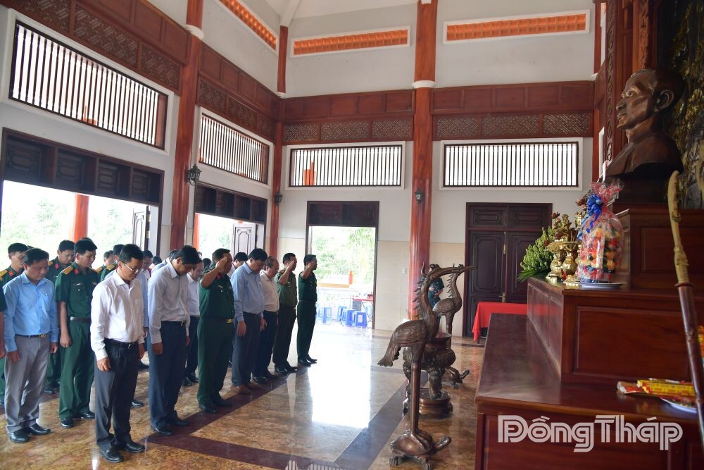 Đoàn công tác dành phút mặc niệm tưởng nhớ công lao và tri ân đồng chí Phan Văn Khỏe.