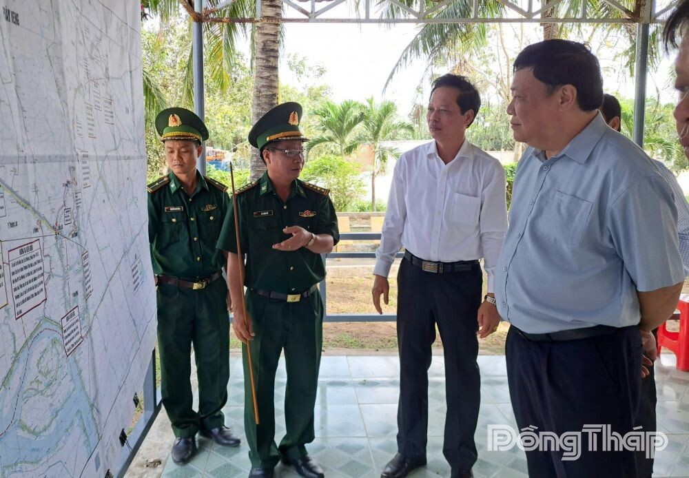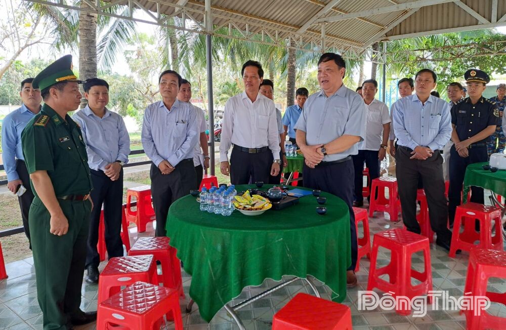 Chiều cùng ngày, Đoàn công tác tiếp tục kiểm tra tuyến đường tuần tra biên giới qua phường Hồng Ngự, xã Tân Hộ Cơ; khảo sát tại Cửa khẩu Quốc tế Dinh Bà, các vị trí dự kiến xây dựng các trường phổ thông nội trú tại các xã Tân Thành, Tân Hộ Cơ và Tân Hồng.