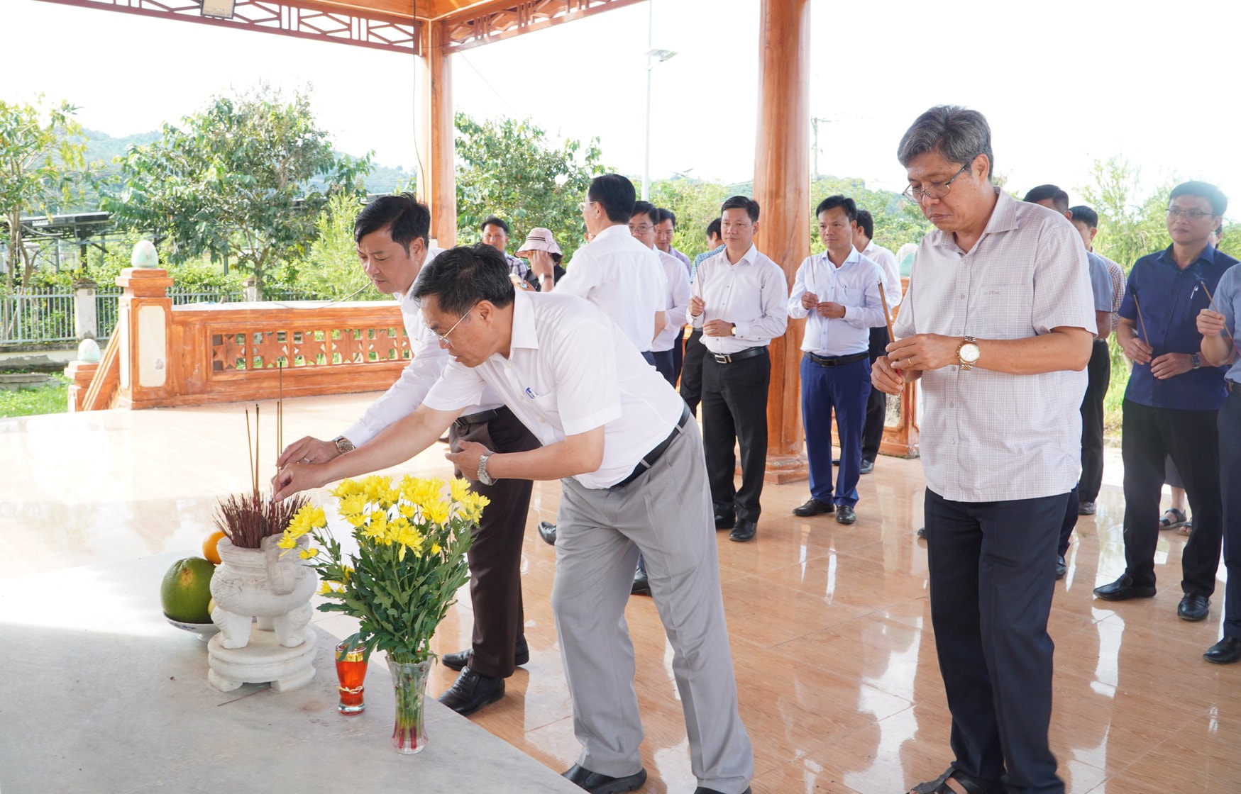 Đồng chí Hồ Văn Mười, Phó Bí thư Tỉnh ủy, Chủ tịch UBND tỉnh và Đoàn công tác dâng hương tưởng nhớ công lao của Anh hùng N’Trang Gưh