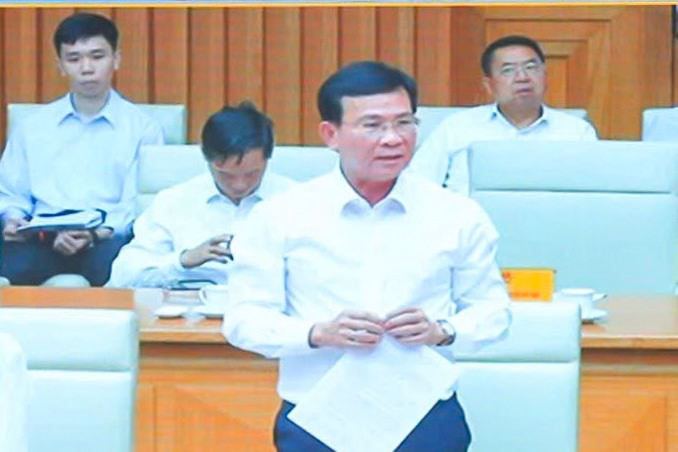 Ủy viên Ban Chấp hành Trung ương Đảng, Phó Bí thư Tỉnh ủy, Chủ tịch UBND tỉnh Lâm Đồng Hồ Văn Mười phát biểu tại hội nghị ở điểm cầu trực tiếp Hà Nội (Ảnh chụp qua màn hình)