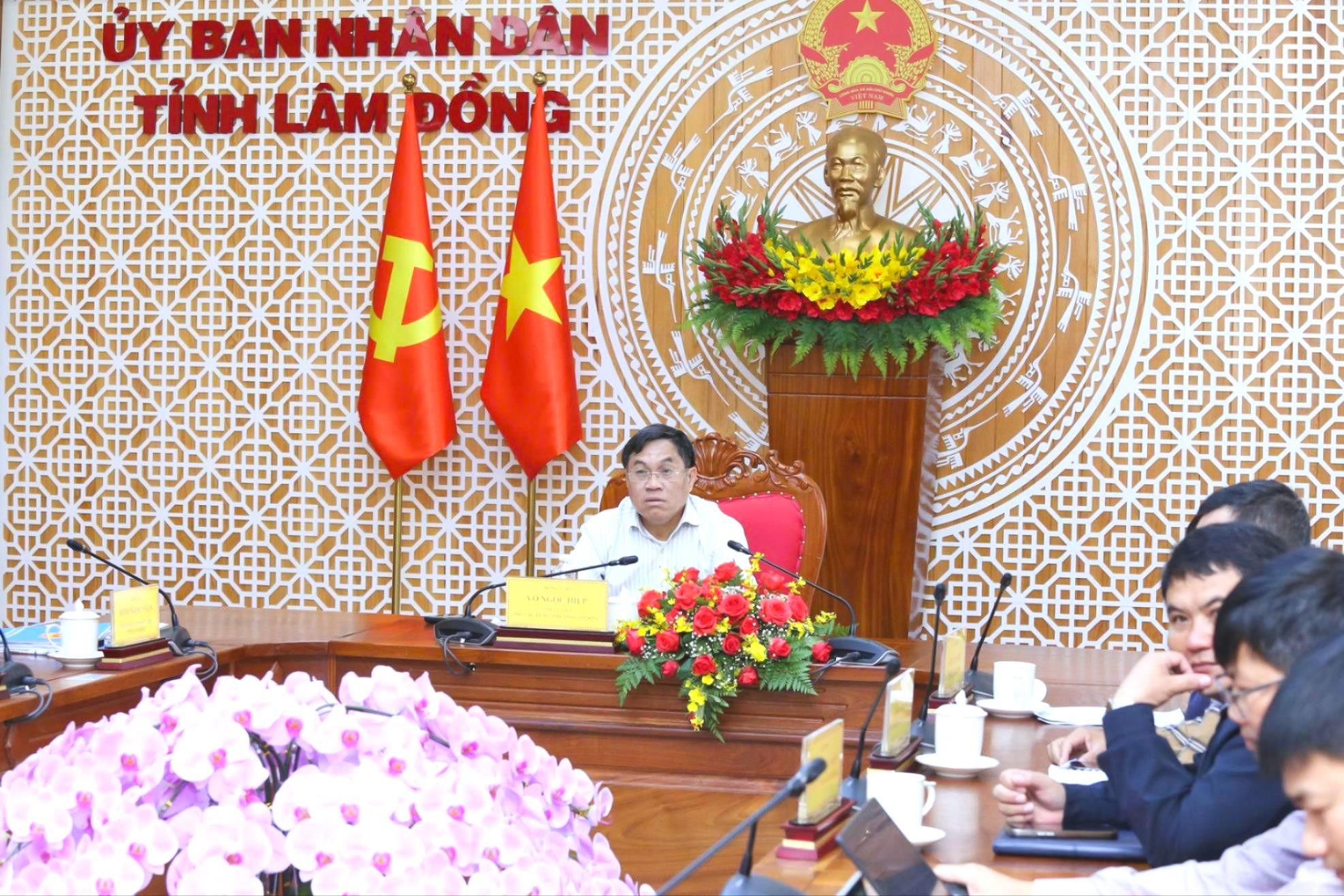 Tại điểm cầu Lâm Đồng, Tỉnh ủy viên, Phó Chủ tịch UBND tỉnh Võ Ngọc Hiệp cùng lãnh đạo các sở, ngành, đơn vị tỉnh tham dự.