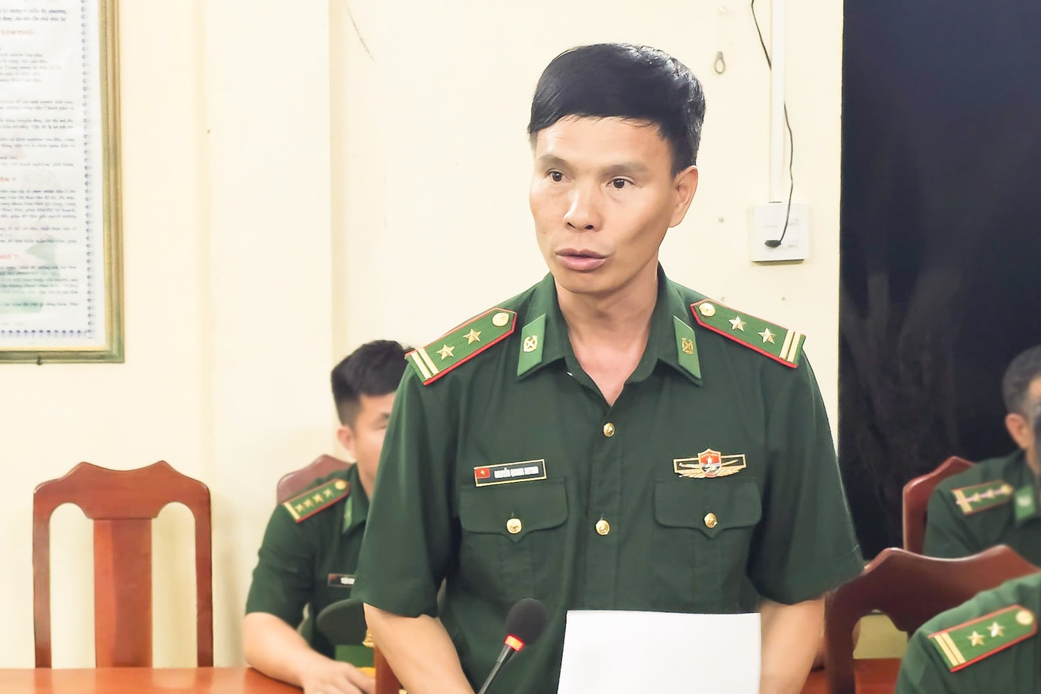 Lãnh đạo Đồn Biên phòng cửa khẩu Cảng Phú Quý báo cáo hoạt động của đơn vị