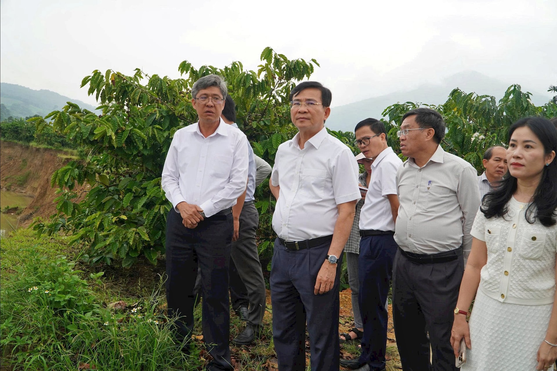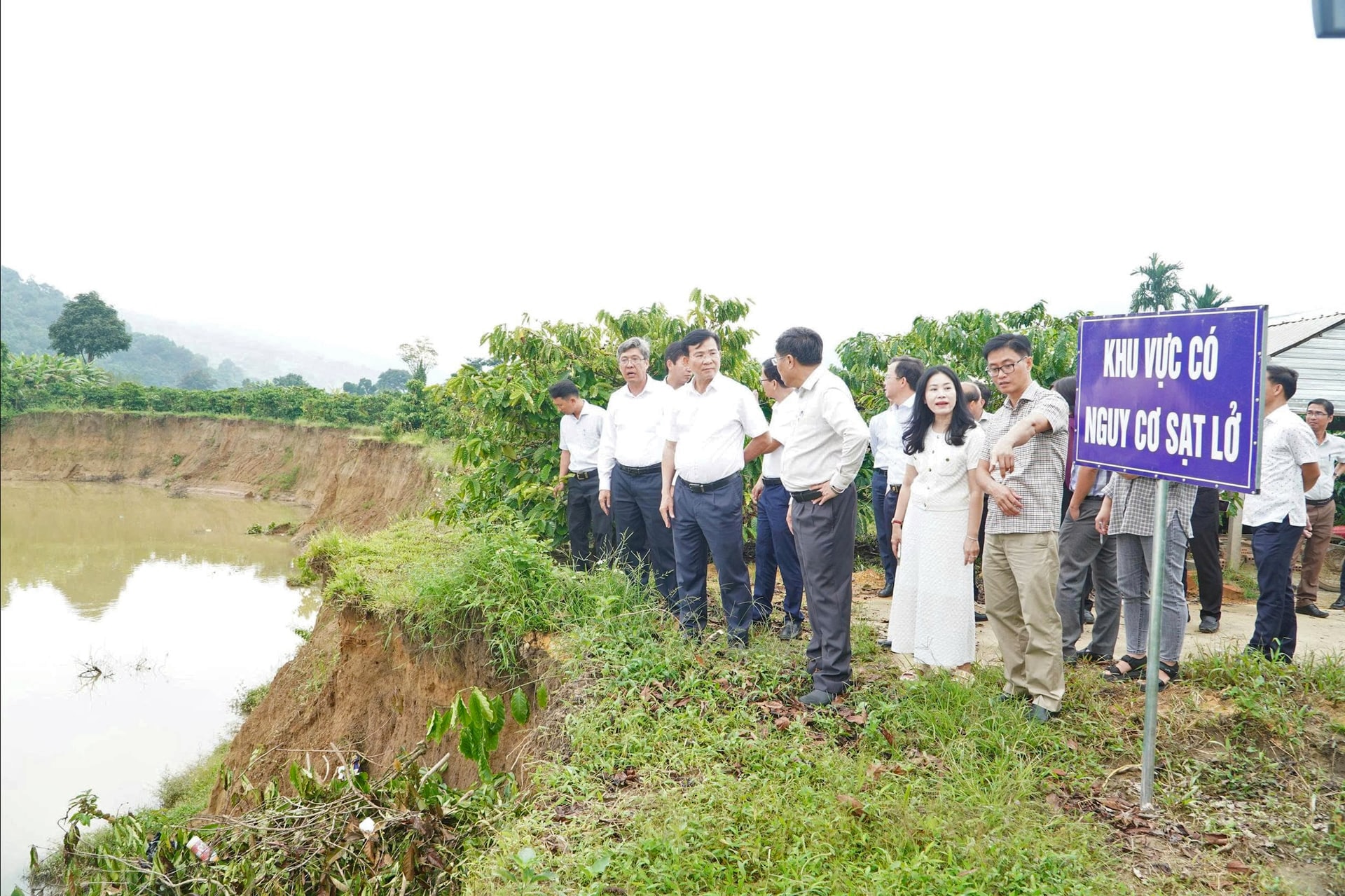 Các đồng chí lãnh đạo UBND tỉnh đề nghị xã cần tăng cường cảnh báo đến người dân về nguy cơ sạt lở để bảo đảm an toàn