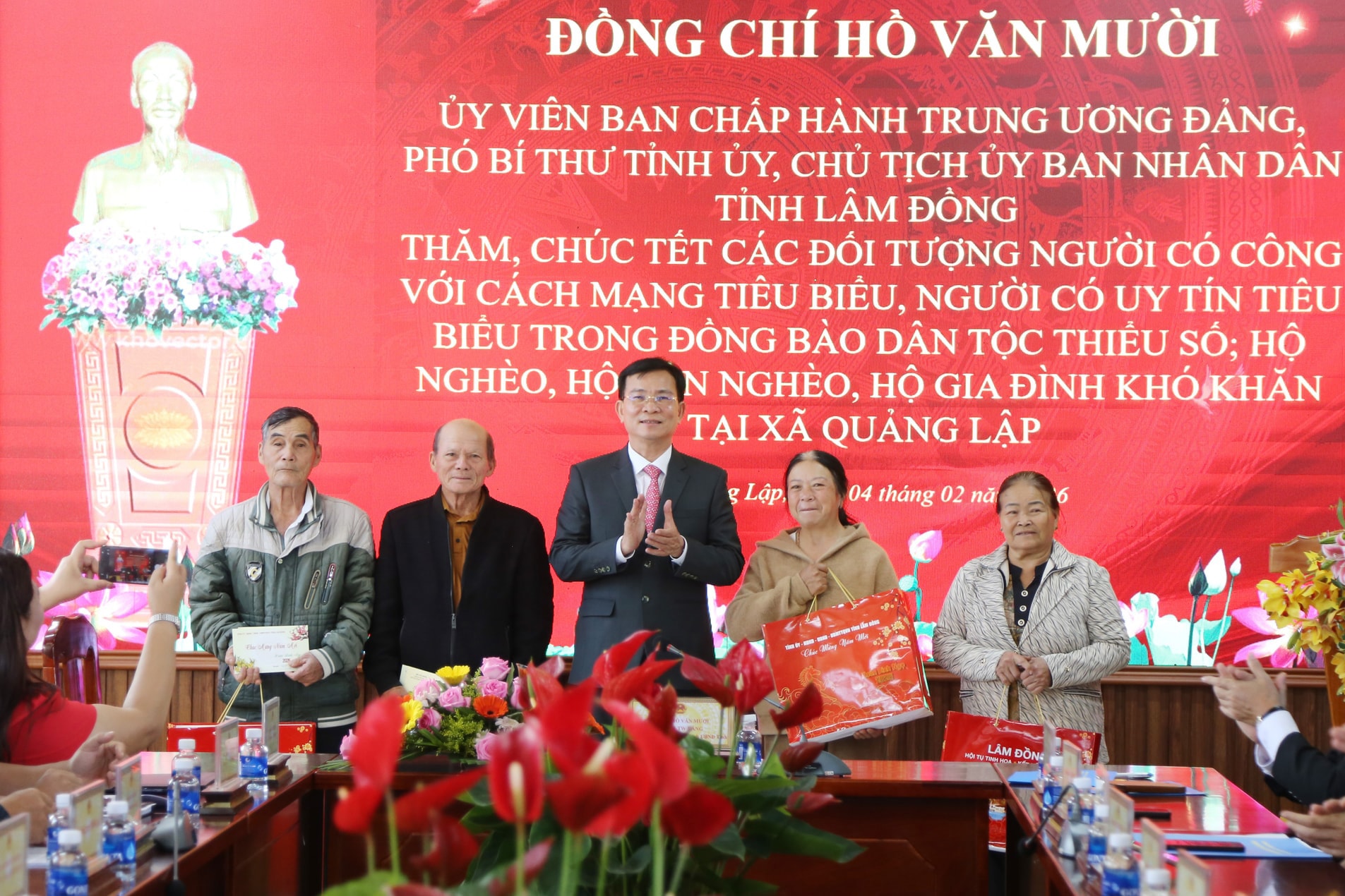 Ủy viên Ban Chấp hành Trung ương Đảng, Phó Bí thư Tỉnh ủy, Chủ tịch UBND tỉnh Lâm Đồng Hồ Văn Mười chúc Tết, tặng quà cho các hộ gia đình chính sách xã Quảng Lập