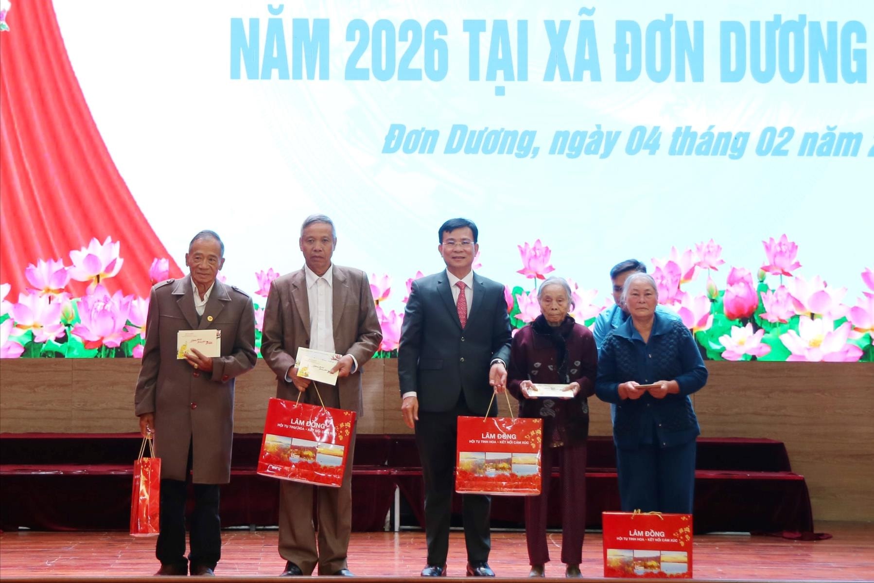 Ủy viên Ban Chấp hành Trung ương Đảng, Phó Bí thư Tỉnh ủy, Chủ tịch UBND tỉnh Lâm Đồng Hồ Văn Mười tặng quà Tết cho người dân xã Đơn Dương