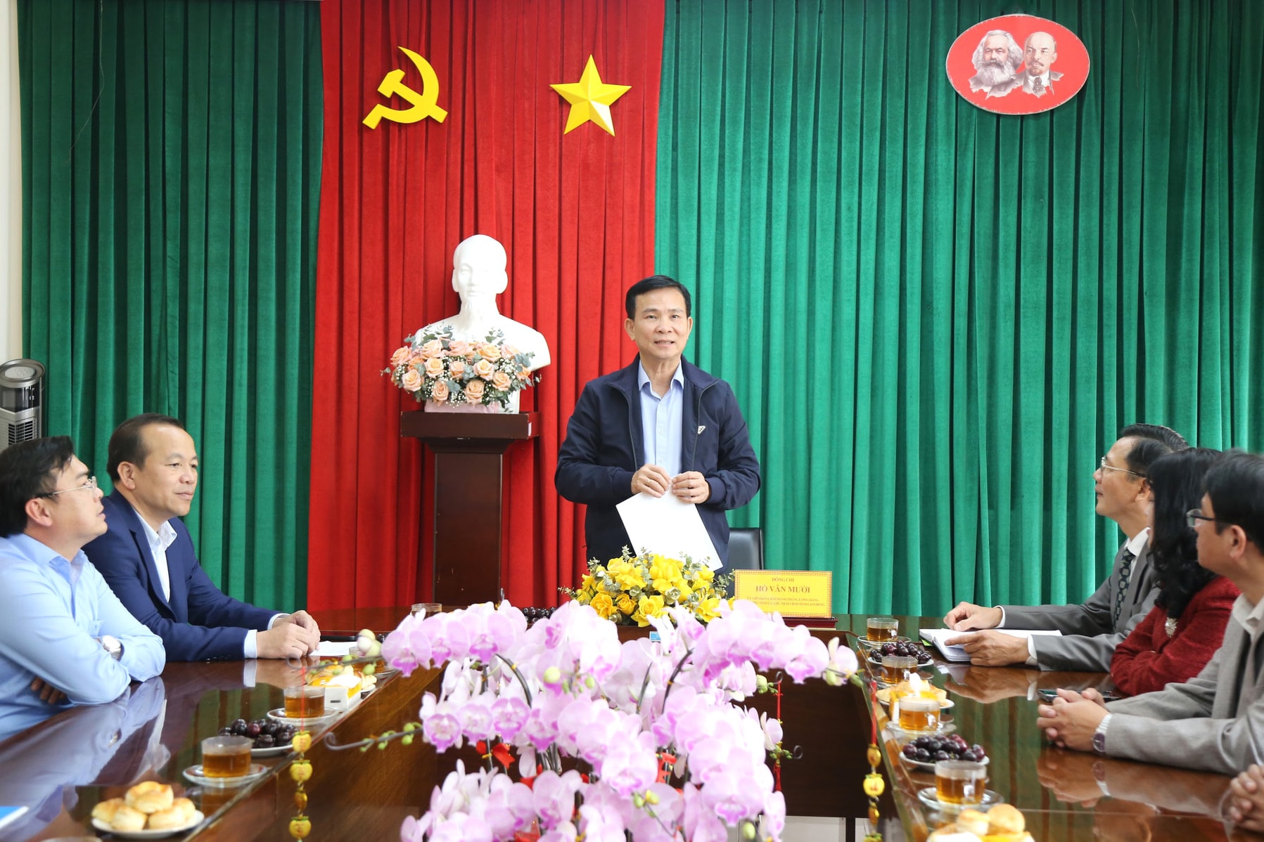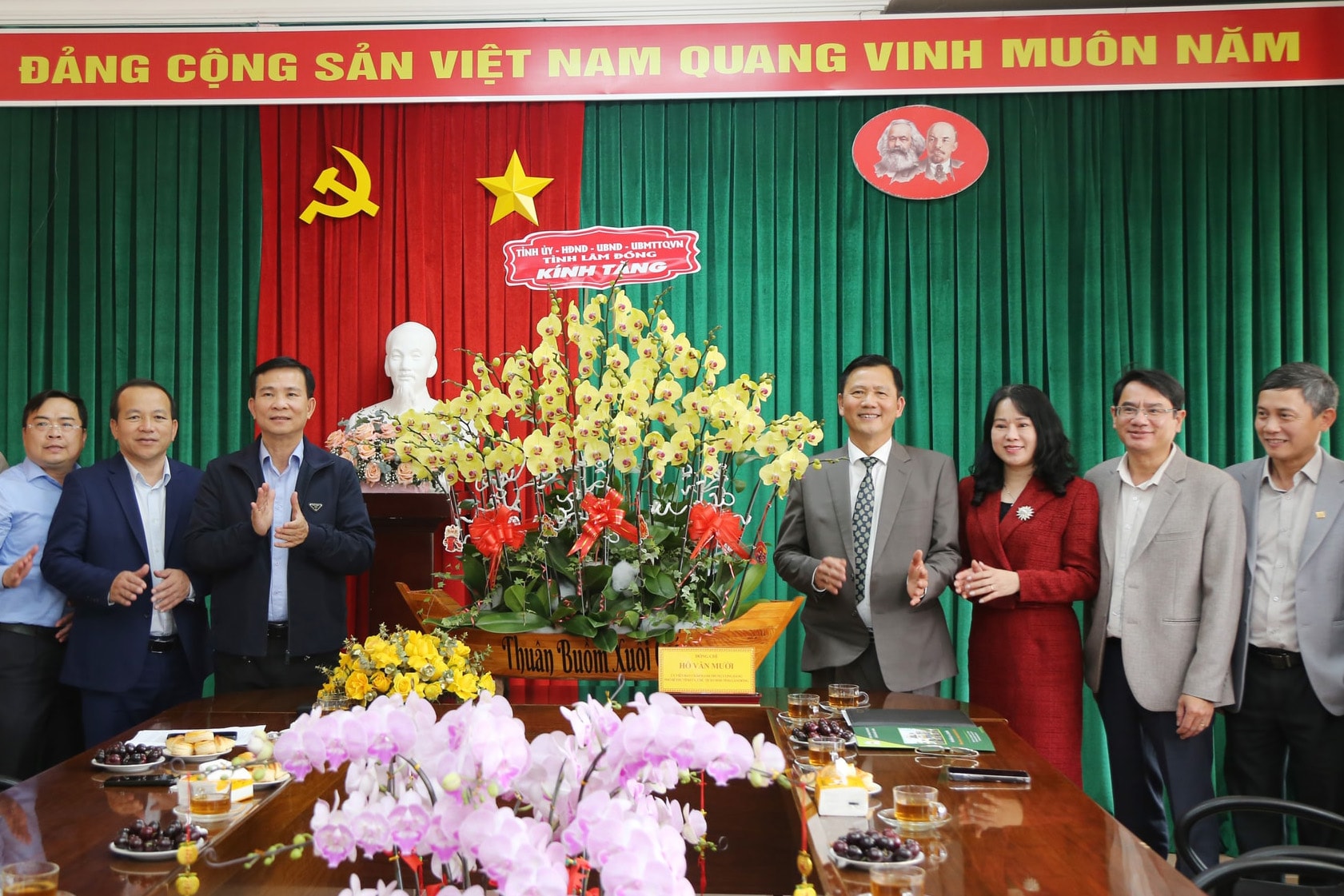 Ủy viên Ban Chấp hành Trung ương Đảng, Phó Bí thư Tỉnh ủy, Chủ tịch UBND tỉnh Hồ Văn Mười thăm tặng lãng hoa tươi thắm, gửi lời chúc tốt đẹp đến tập thể Công ty TNHH MTV Xổ số kiến thiết Lâm Đồng
