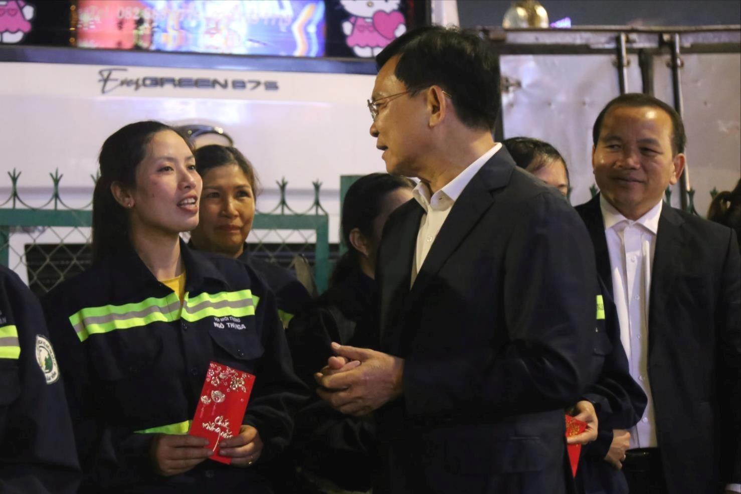 “Mỗi chúng ta cố gắng khắc phục khó khăn, nỗ lực hoàn thành sớm công việc của mình để trở về cùng đoàn tụ với gia đình đón năm mới. UBND tỉnh đánh giá cao tinh thần trách nhiệm, sự tận tụy của đội ngũ công nhân môi trường, góp phần xây dựng đô thị văn minh, hiện đại, nghĩa tình”, Chủ tịch UBND tỉnh Lâm Đồng Hồ Văn Mười chia sẻ.