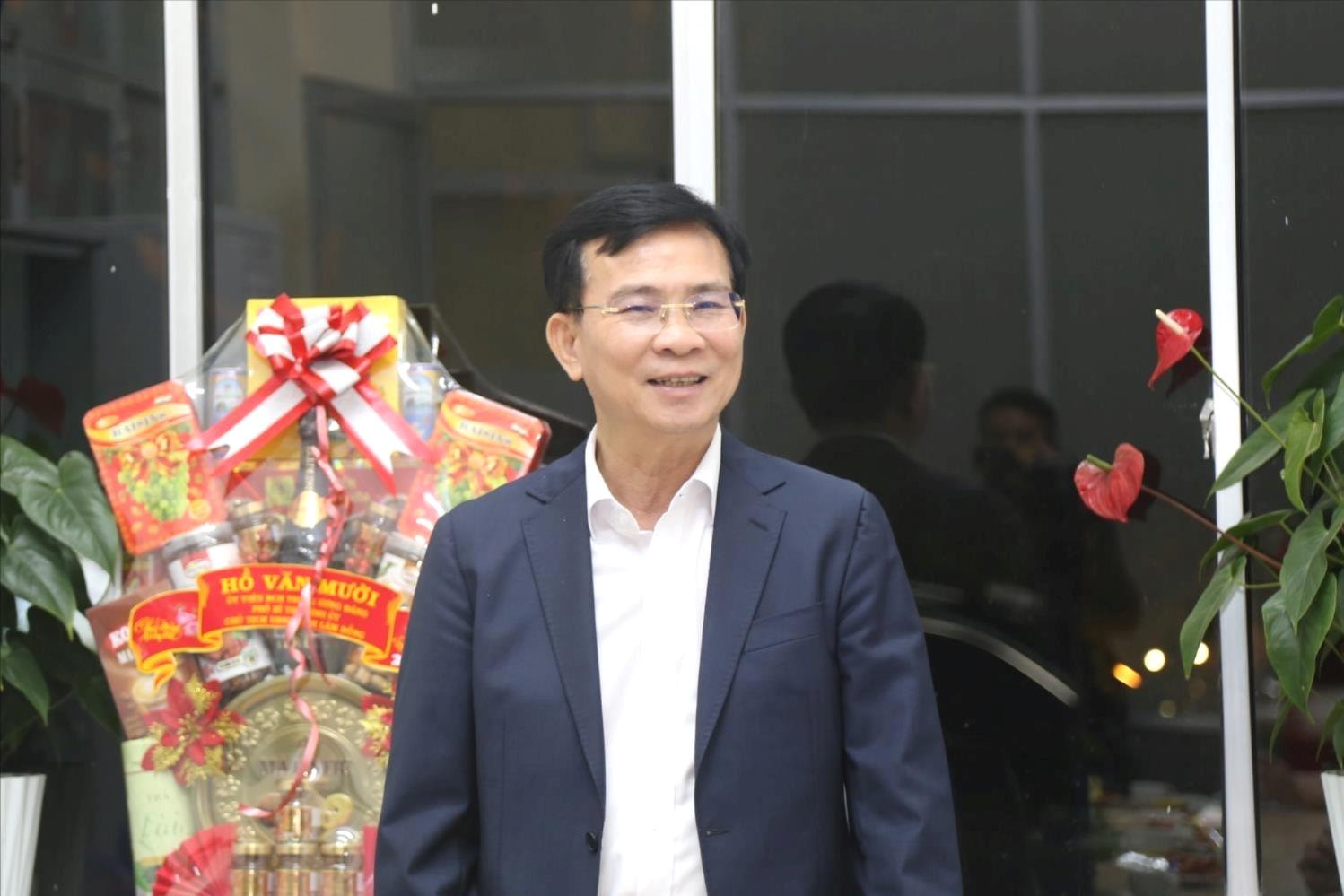 Tập thể Công ty Cổ phần Dịch vụ đô thị Đà Lạt nhận lẵng quà chúc Tết và nhiều lời chúc ý nghĩa của nam mới từ đồng chí Hồ Văn Mười, Ủy viên Trung ương Đảng, Phó Bí thư Tỉnh ủy, Chủ tịch UBND tỉnh Lâm Đồng