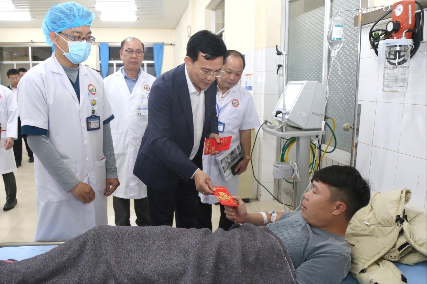 Ủy viên Trung ương Đảng, Phó Bí thư Tỉnh ủy, Chủ tịch UBND tỉnh Lâm Đồng Hồ Văn Mười thăm hỏi, động viên bệnh nhân đang điều trị tại Bệnh viện Đa khoa tỉnh