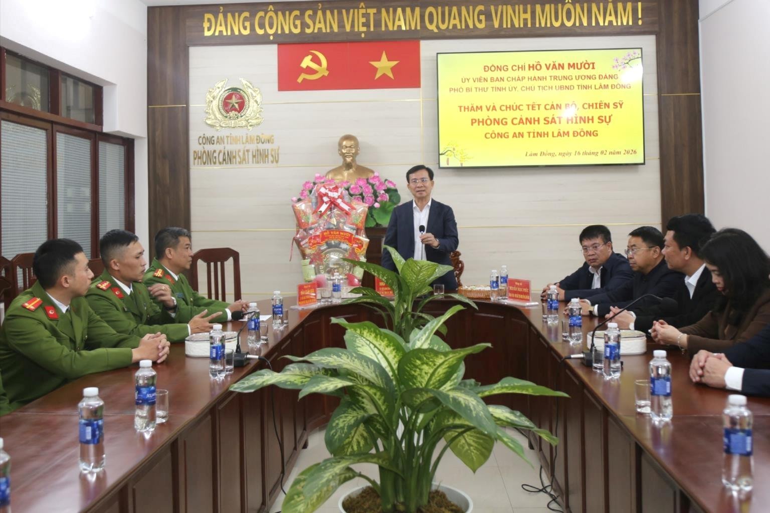 Ủy viên Trung ương Đảng, Phó Bí thư Tỉnh ủy, Chủ tịch UBND tỉnh Lâm Đồng Hồ Văn Mười tặng quà, chúc Tết và động viên cán bộ, chiến sỹ Phòng Cảnh sát Phòng cháy chữa cháy và Cứu nạn cứu hộ (Công an tỉnh)