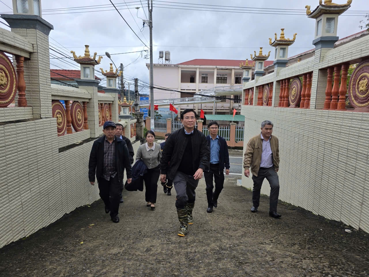 Chủ tịch UBND tỉnh Lâm Đồng Hồ Văn Mười và Phó Chủ tịch Ủy ban MTTQ Việt Nam tỉnh Lâm Đồng Phạm Triều ân cần thăm hỏi tình hình người dân thôn Quảng Lạc