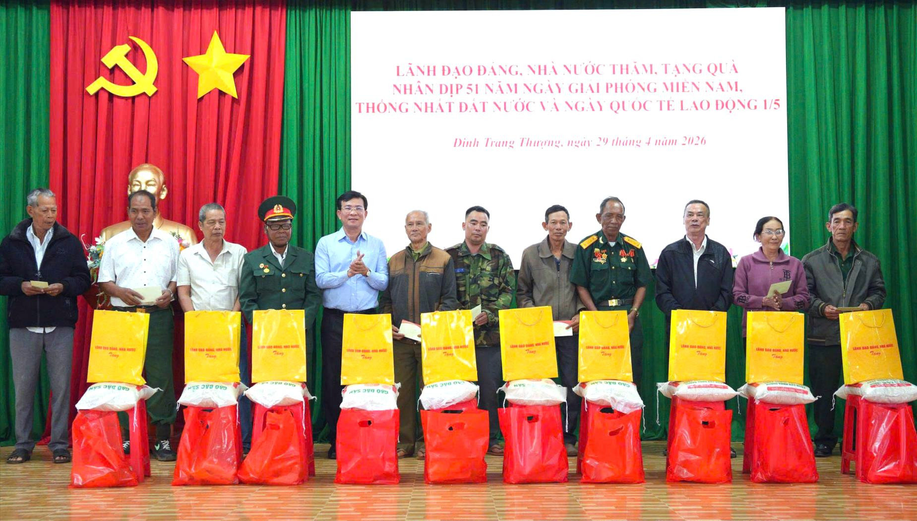 Tại đây, Chủ tịch UBND tỉnh Hồ Văn Mười đã trao tặng 60 suất quà của lãnh đạo Đảng, Nhà nước đến với các gia đình chính sách. Trị giá mỗi suất quà 2,5 triệu đồng.