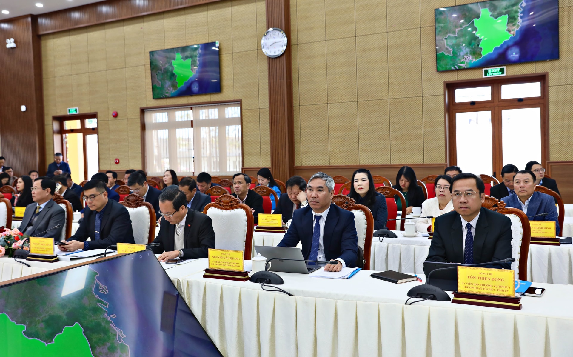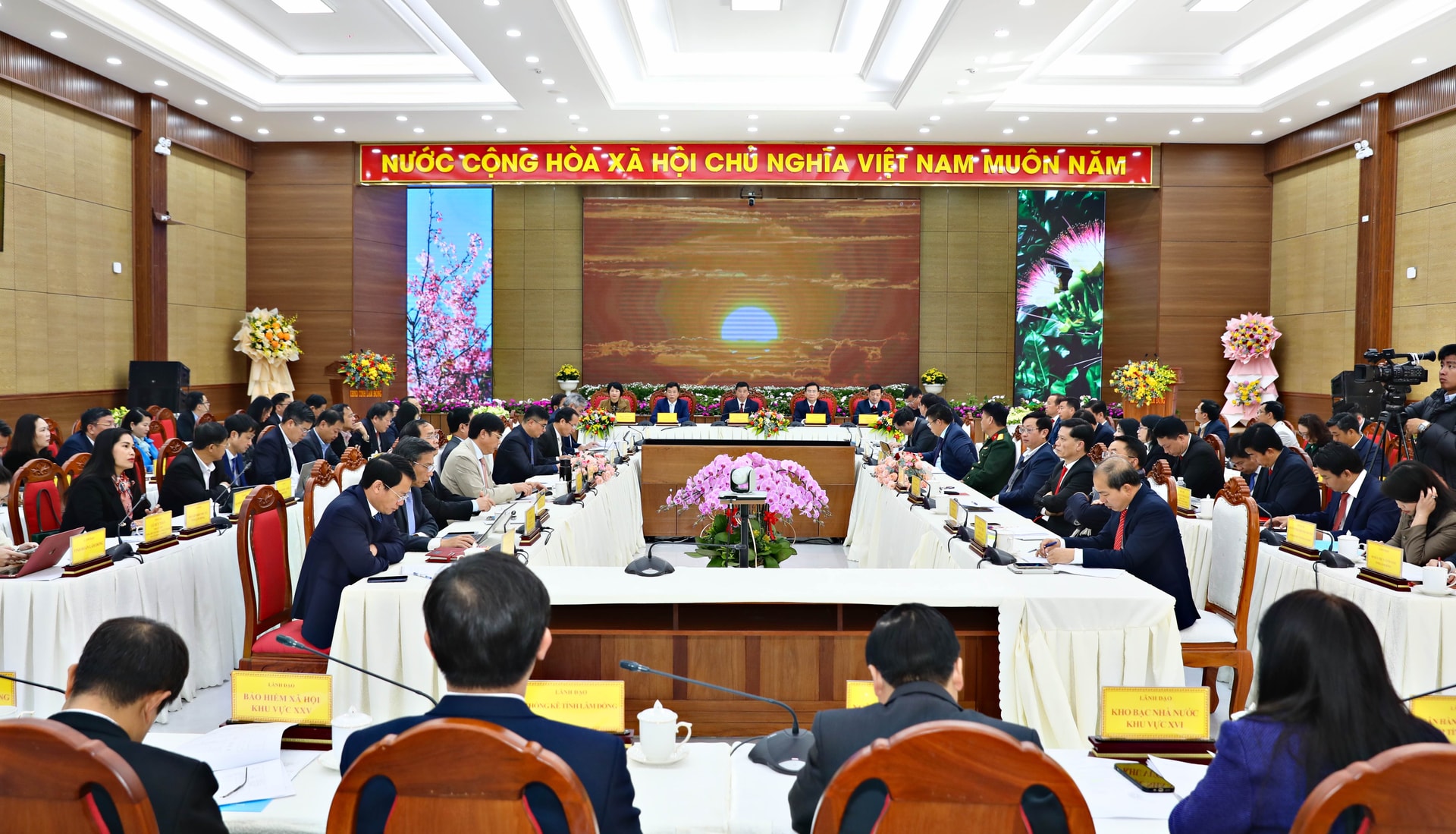 Các đồng chí chủ trì Hội nghị đánh giá tình hình kinh tế - xã hội năm 2025, triển khai nhiệm vụ, giải pháp trọng tâm năm 2026