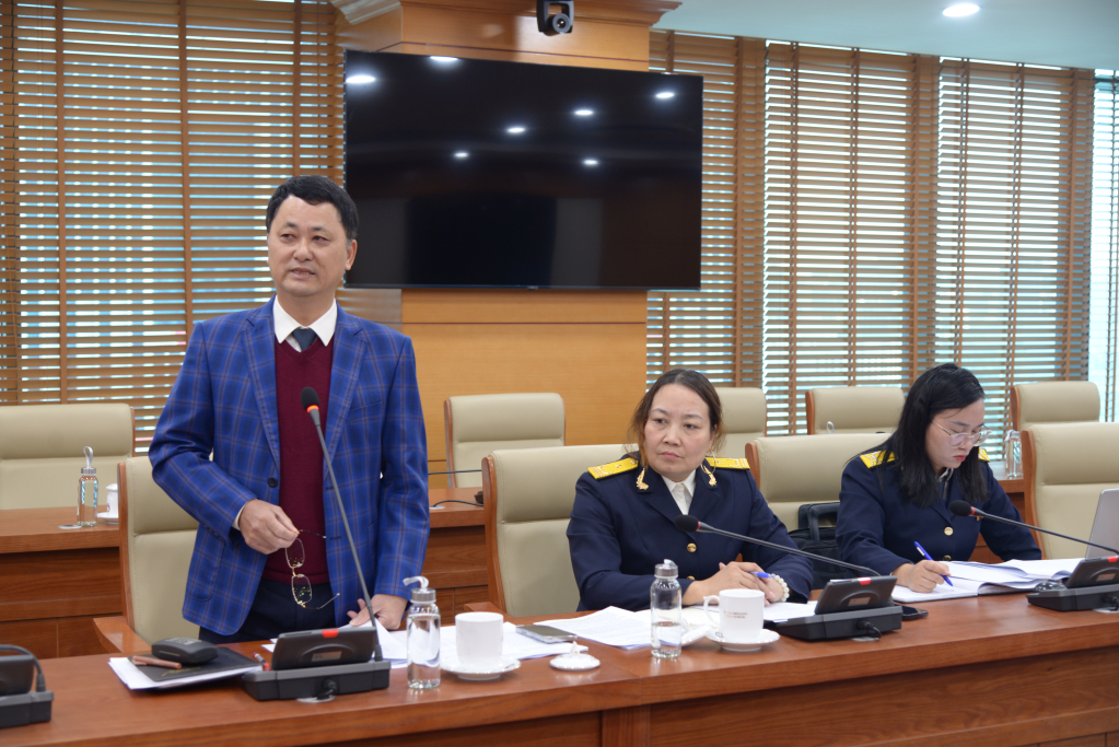 Lãnh đạo Thuế tỉnh phát biểu tại cuộc họp.