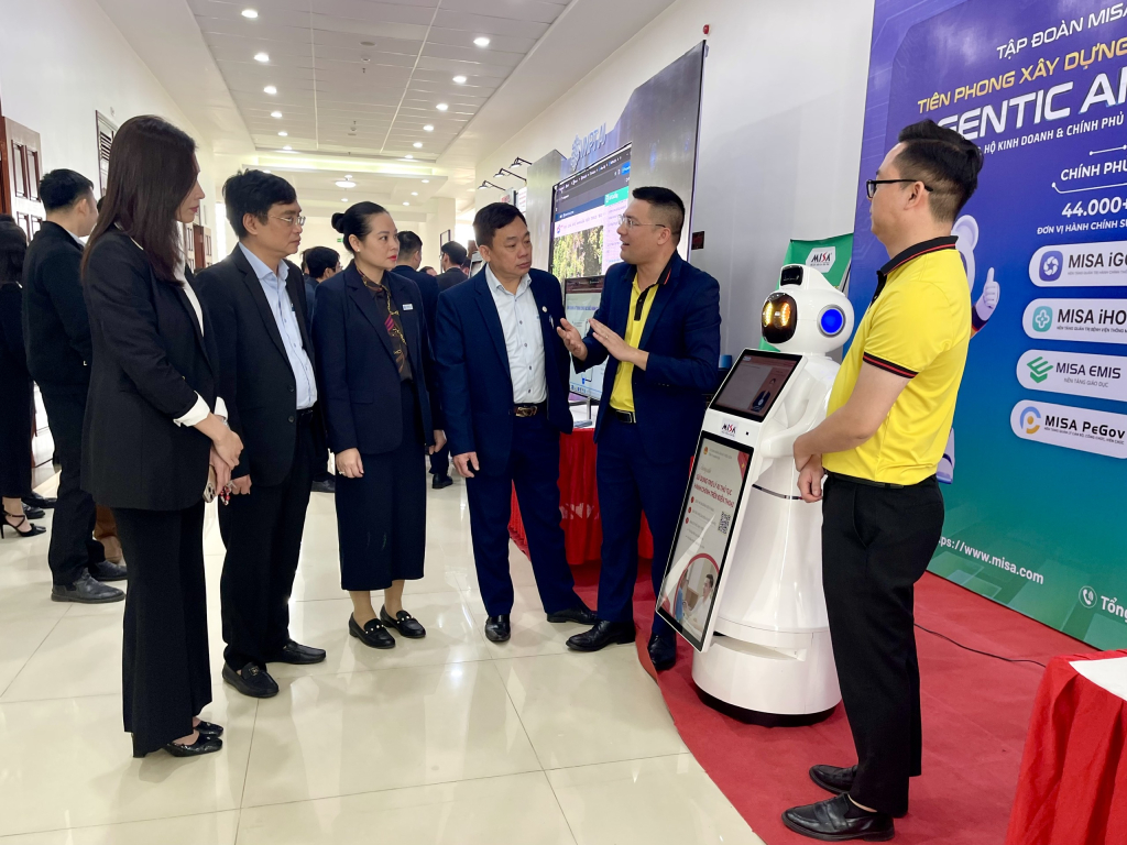 Các đại biểu tham quan trải nghiệm mô hình Robot phục vụ công tác Hành chính công của Công ty cổ phần Misa.