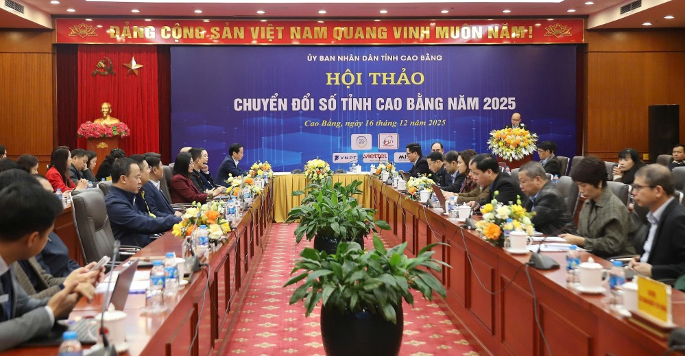 Khai mạc hội thảo, Chủ tịch UBND tỉnh khẳng định Hội thảo Chuyển đổi số tỉnh Cao Bằng năm 2025 là sự kiện kịp thời, cần thiết trong bối cảnh cả nước đẩy mạnh phát triển khoa học - công nghệ, đổi mới sáng tạo và chuyển đổi số; đồng thời là dịp để tỉnh nhìn nhận thẳng thắn thực trạng, xác định rõ hướng đi và cách làm chuyển đổi số phù hợp với điều kiện của Cao Bằng trong thời gian tới. Đồng chí nhấn mạnh, Cao Bằng là tỉnh miền núi, biên giới, xuất phát điểm thấp, hạ tầng, nguồn lực và kỹ năng số của đội ngũ cán bộ, nhất là ở cơ sở, còn nhiều hạn chế; tuy nhiên, đi sau không thể đứng ngoài cuộc và càng không thể chuyển đổi số theo phong trào. Việc ứng dụng trí tuệ nhân tạo phải thực chất, đúng bản chất, không nhằm trình diễn công nghệ hay thay thế con người, mà là công cụ hỗ trợ nâng cao hiệu quả quản lý, điều hành; trong đó con người và trách nhiệm của người đứng đầu vẫn là yếu tố quyết định.