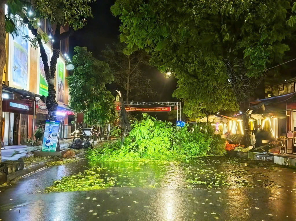 Cơn mưa to đêm 17 rạng sáng ngày 18/4 làm tốc mái nhà dân, cây gẫy đổ tại khu vực trung tâm xã Trùng Khánh.
