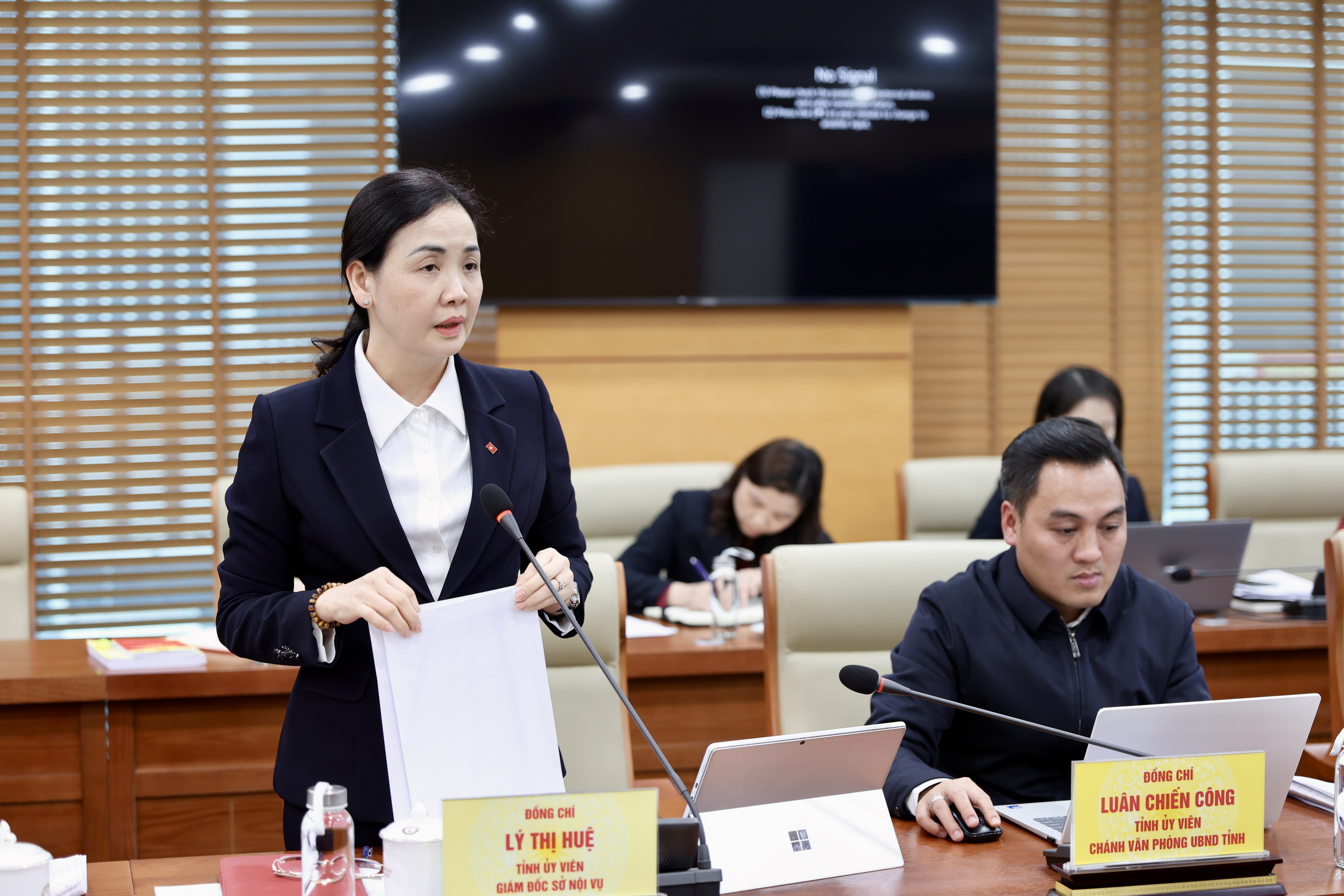 Lãnh đạo Sở Nội vụ báo cáo kết quả triển khai công tác bầu cử đại biểu Quốc hội khóa XVI và đại biểu HĐND các cấp nhiệm kỳ 2026 - 2031 trên địa bàn tỉnh.