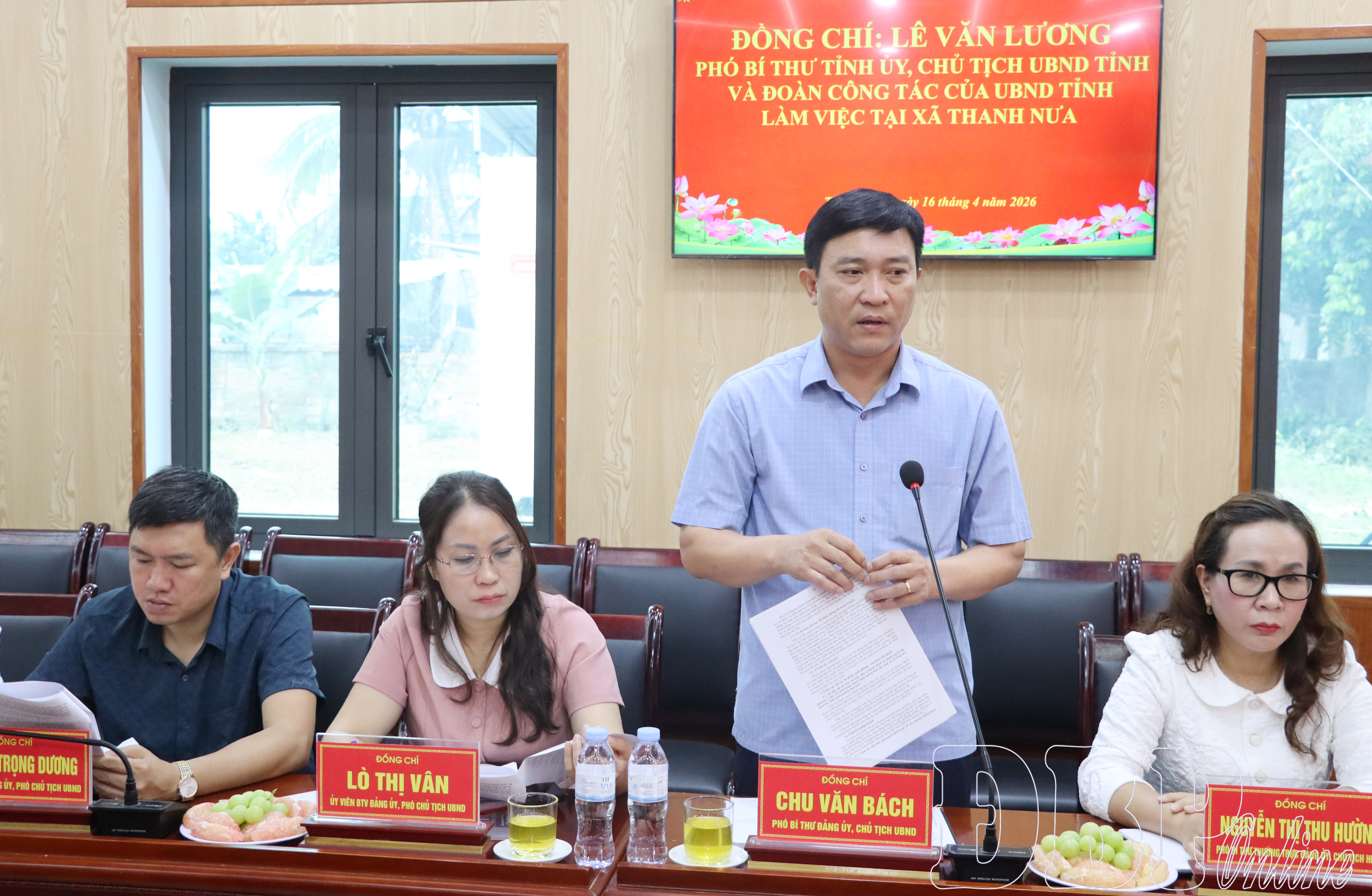 Chủ tịch UBND tỉnh Lê Văn Lương đánh giá cao những kết quả nổi bật xã Thanh Nưa đạt được thời gian qua. Đồng chí đề nghị địa phương tập trung hoàn thiện quy hoạch chung của xã; rà soát tiềm năng, dư địa để thúc đẩy phát triển nông, lâm nghiệp gắn với nâng cao giá trị sản xuất; đẩy mạnh dịch vụ - thương mại, nhất là khai thác hiệu quả tiềm năng du lịch.
